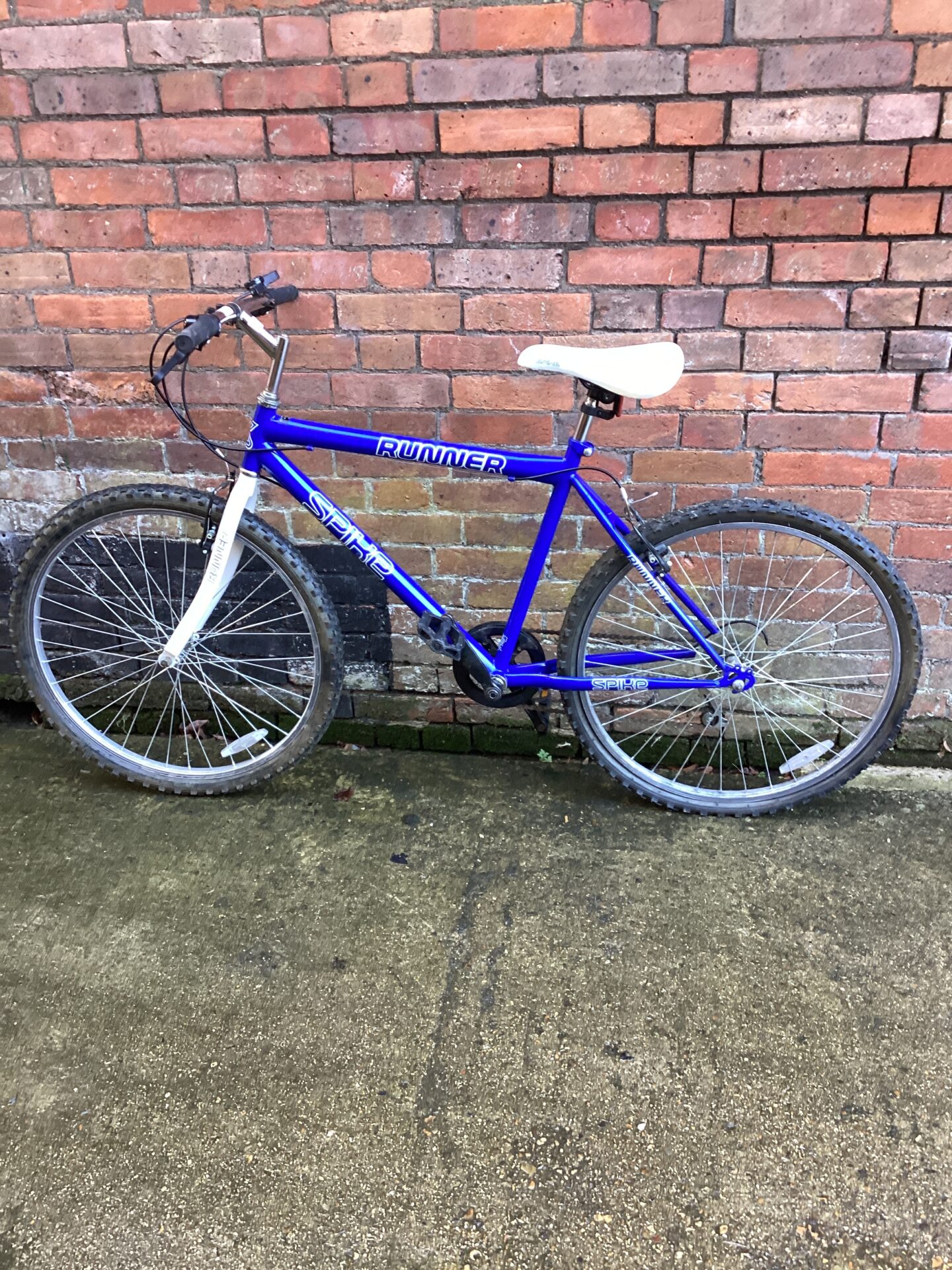 This vintage Spike Runner mountain bike offers a nostalgic ride with its classic design and durable build. A retro bicycle perfect for collectors or those seeking a unique off-road experience. This bike is presented for consideration and may require some attention.
