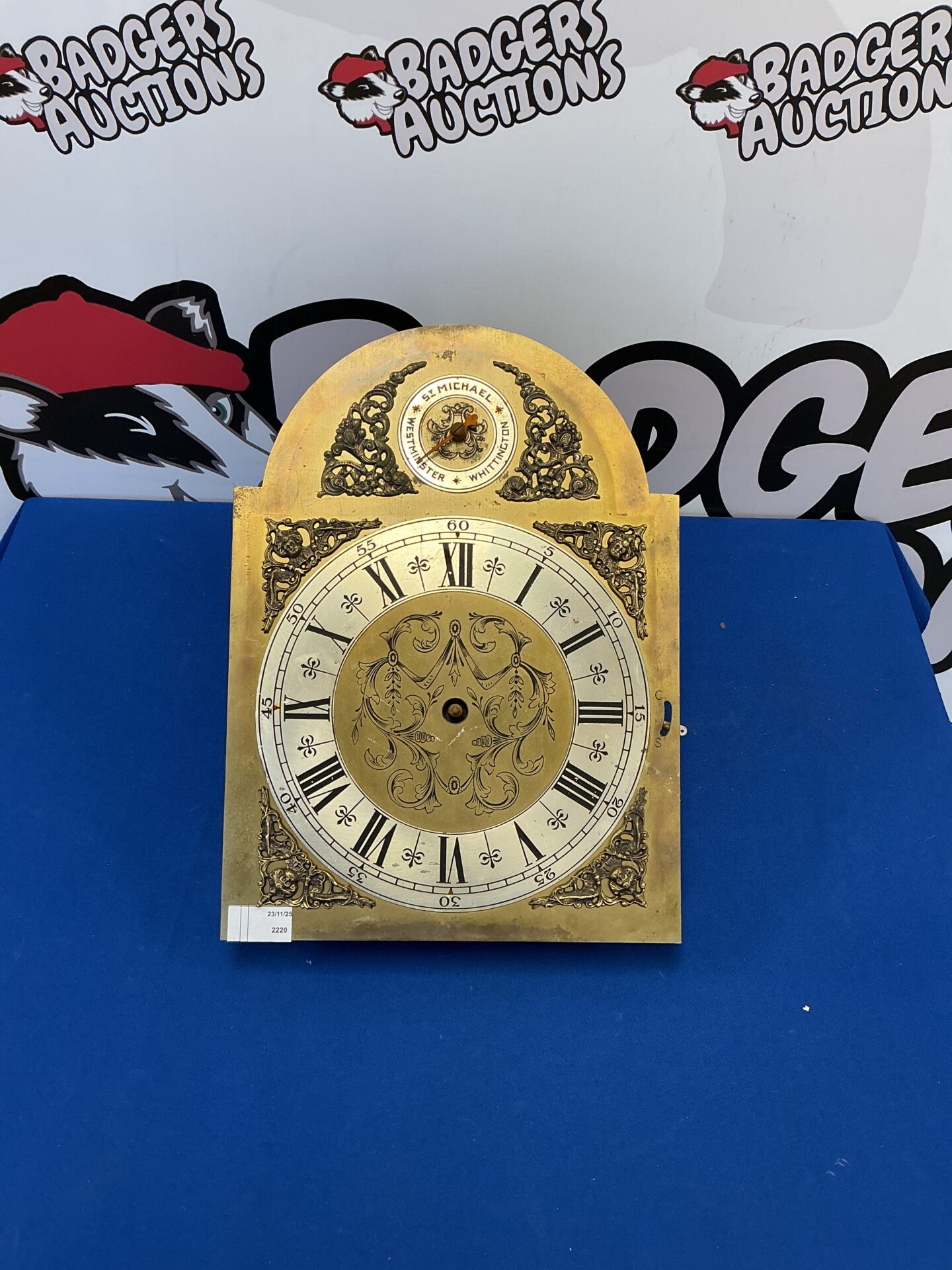 The clock face and movement are presented in a used condition, showing signs of age and wear consistent with their vintage. While the item’s functionality is not assessed, it presents an opportunity for restoration or use in a clock-making project. Collectors of antique clock parts, horologists, or those undertaking clock restoration projects may find this St Micheal Whittington clock face a valuable addition to their collection.