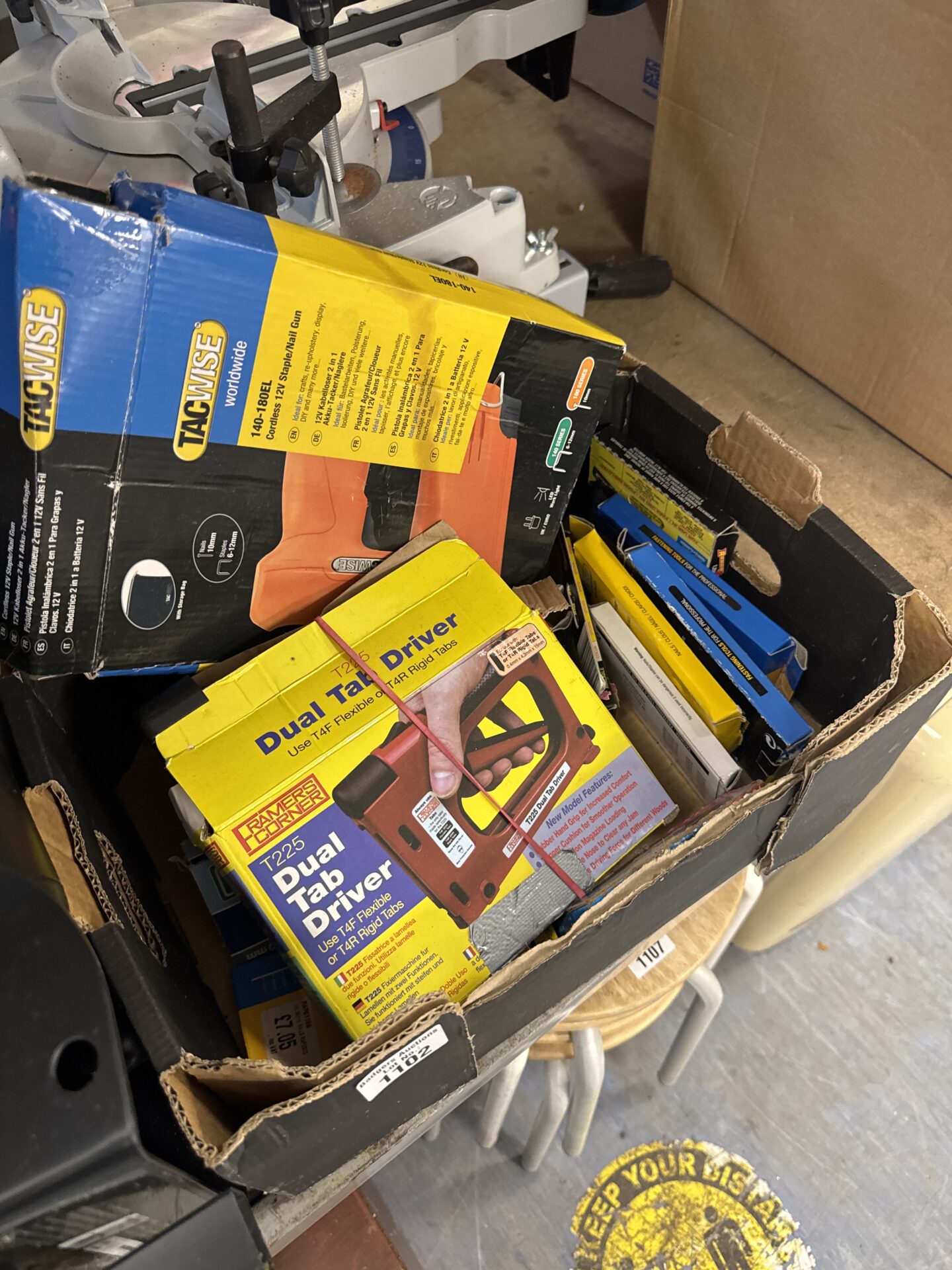 This staple/nail gun appears to be in good, used condition, showing signs of previous use but still fully functional. It would be a great addition to a tool collection or for someone needing a reliable and versatile fastening tool. The combination of staple and nail functionality makes it a practical and space-saving option for many projects.