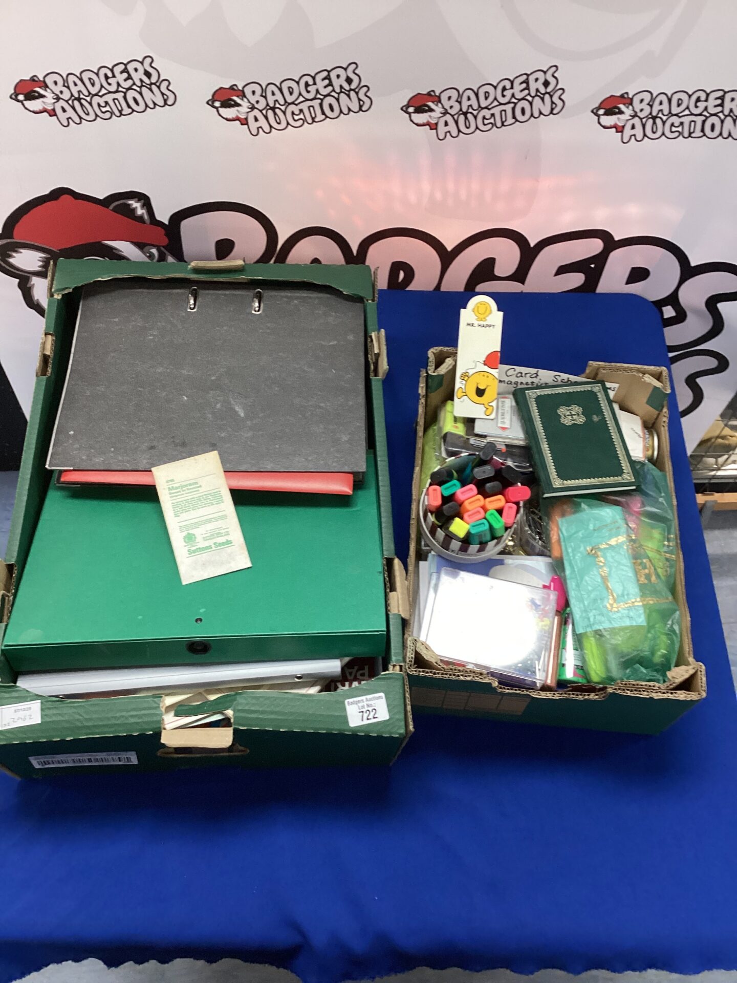 722 Two Boxes Of Mixed Stationary Items Inc High Lighter Pens, Ring Binder Folders & Note Pad