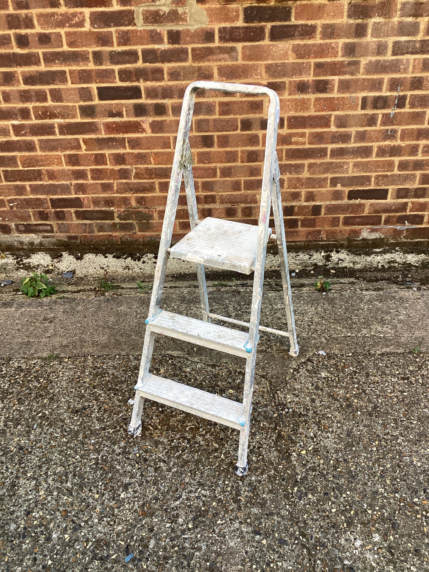 This is a three-step aluminium ladder, designed for reaching elevated areas. Its folding construction allows for easy storage and portability, making it suitable for various tasks around the home or workplace. The ladder’s lightweight aluminium construction provides a balance between durability and ease of handling.