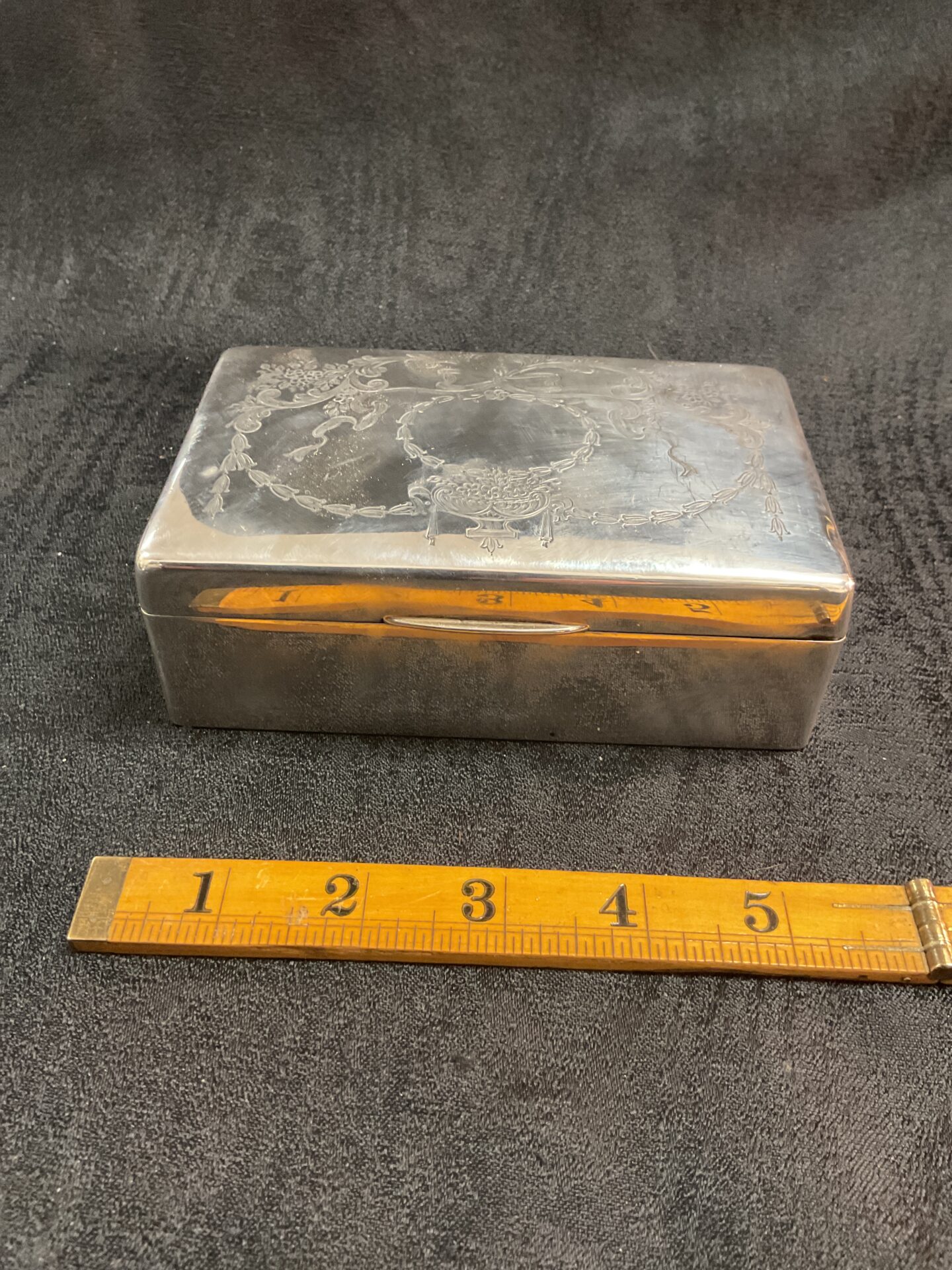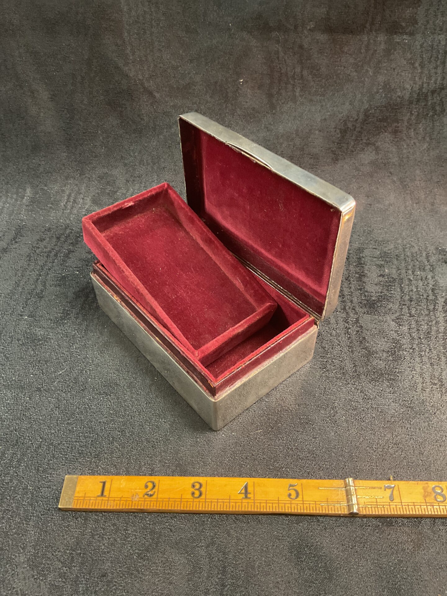 The jewellery box is in good antique condition, with expected wear consistent with age and use. The silver exhibits a lovely patina, enhancing its character and charm. This piece would be a wonderful addition to a collection of antique silver or vintage jewellery boxes, appealing to collectors and those who appreciate fine craftsmanship and timeless design.