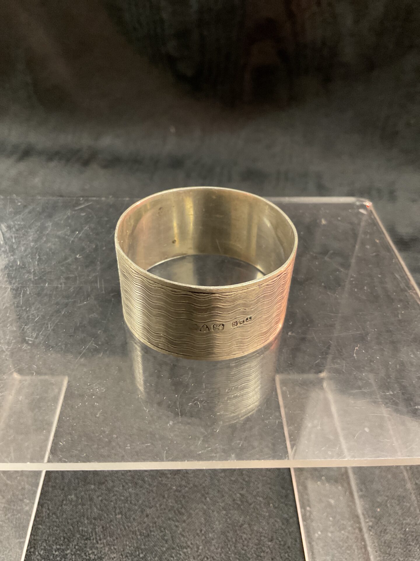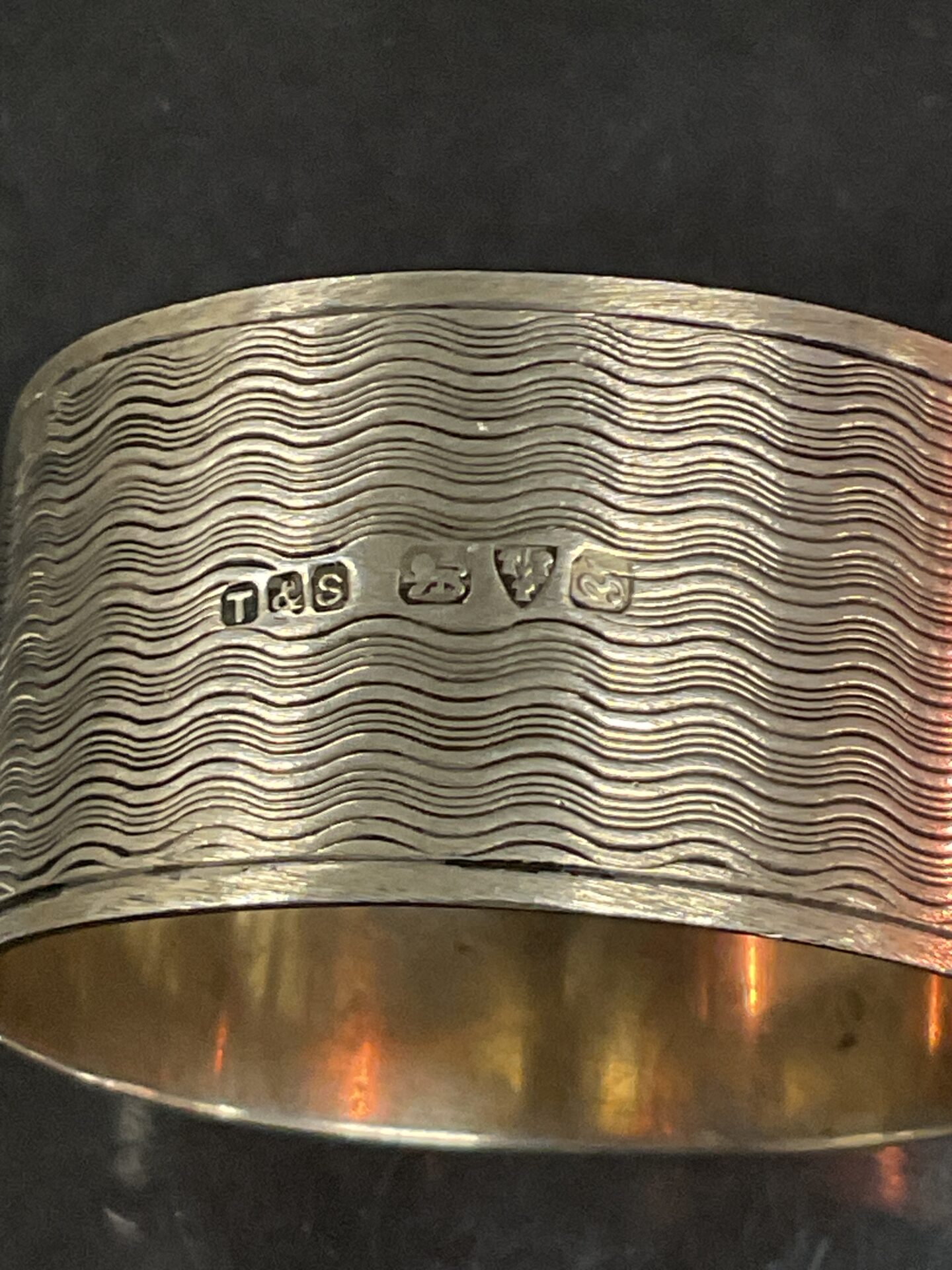 This vintage napkin ring is in good condition, displaying the expected patina of age. It is a desirable piece for collectors of antique silver and vintage tableware. The clear hallmarks and maker’s mark add to its authenticity and value, making it a charming addition to a collection or a thoughtful gift.
