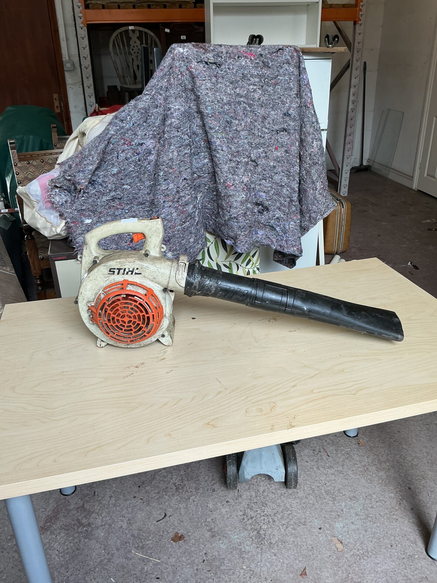 This Stihl leaf blower is offered for sale in used condition. Please examine the images carefully to assess its cosmetic condition and to determine if it meets your requirements. It may be of interest to collectors of vintage garden tools, or those seeking a project to restore a classic Stihl blower.