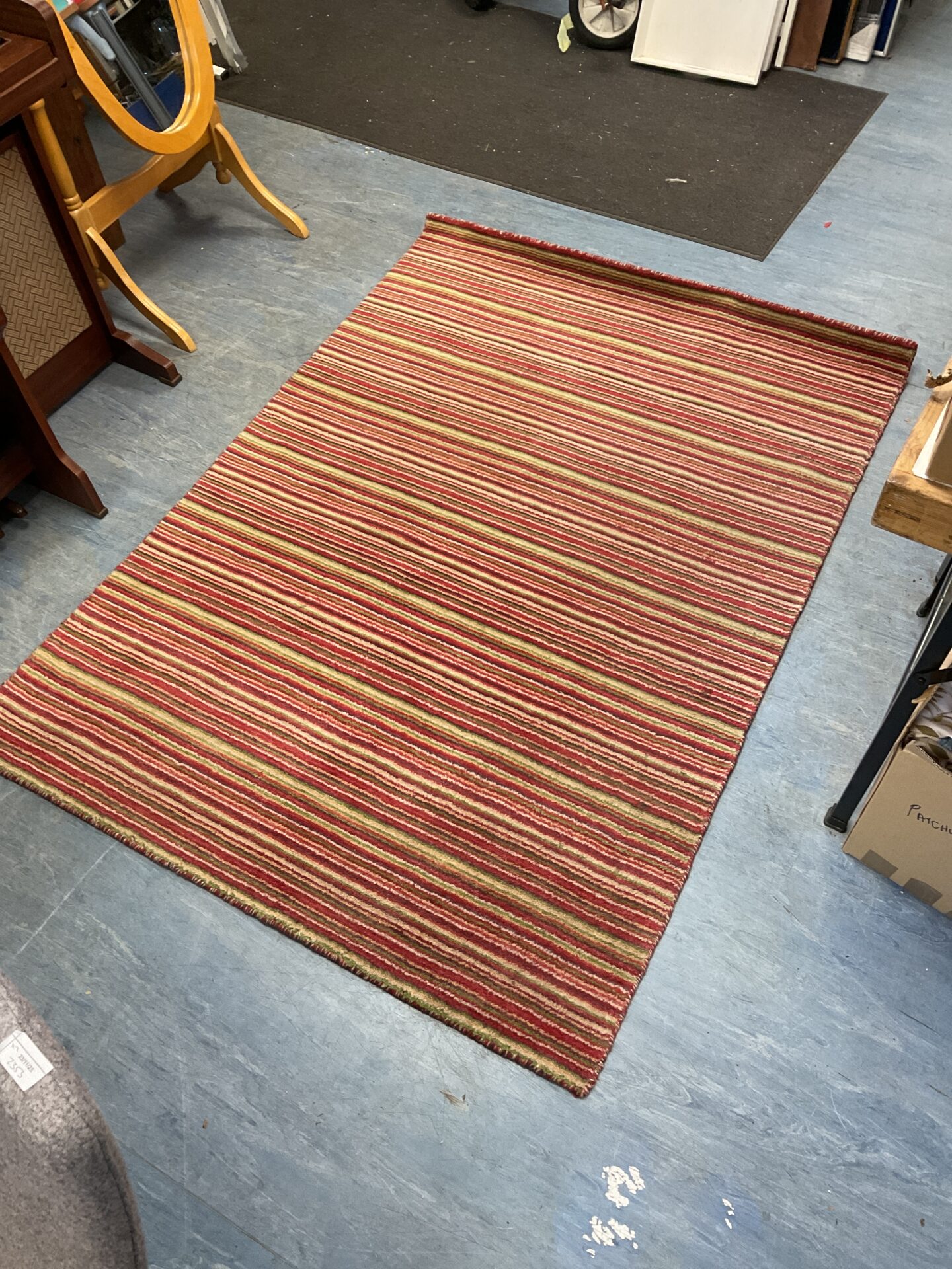 591 Red, Green & Beige Striped Rug Approx 5ft X 6ft
