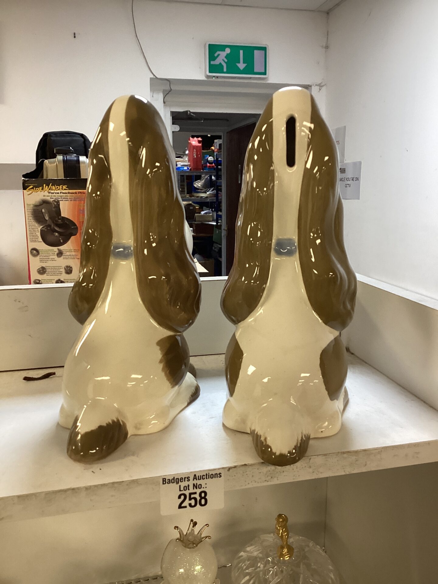 Both dogs appear to be in good condition, with no obvious cracks or chips. There may be some minor crazing to the glaze, consistent with age. These Studio Szeiler dogs are highly collectible, particularly examples in good condition. They would make a delightful addition to a vintage display or a quirky home decor scheme.
