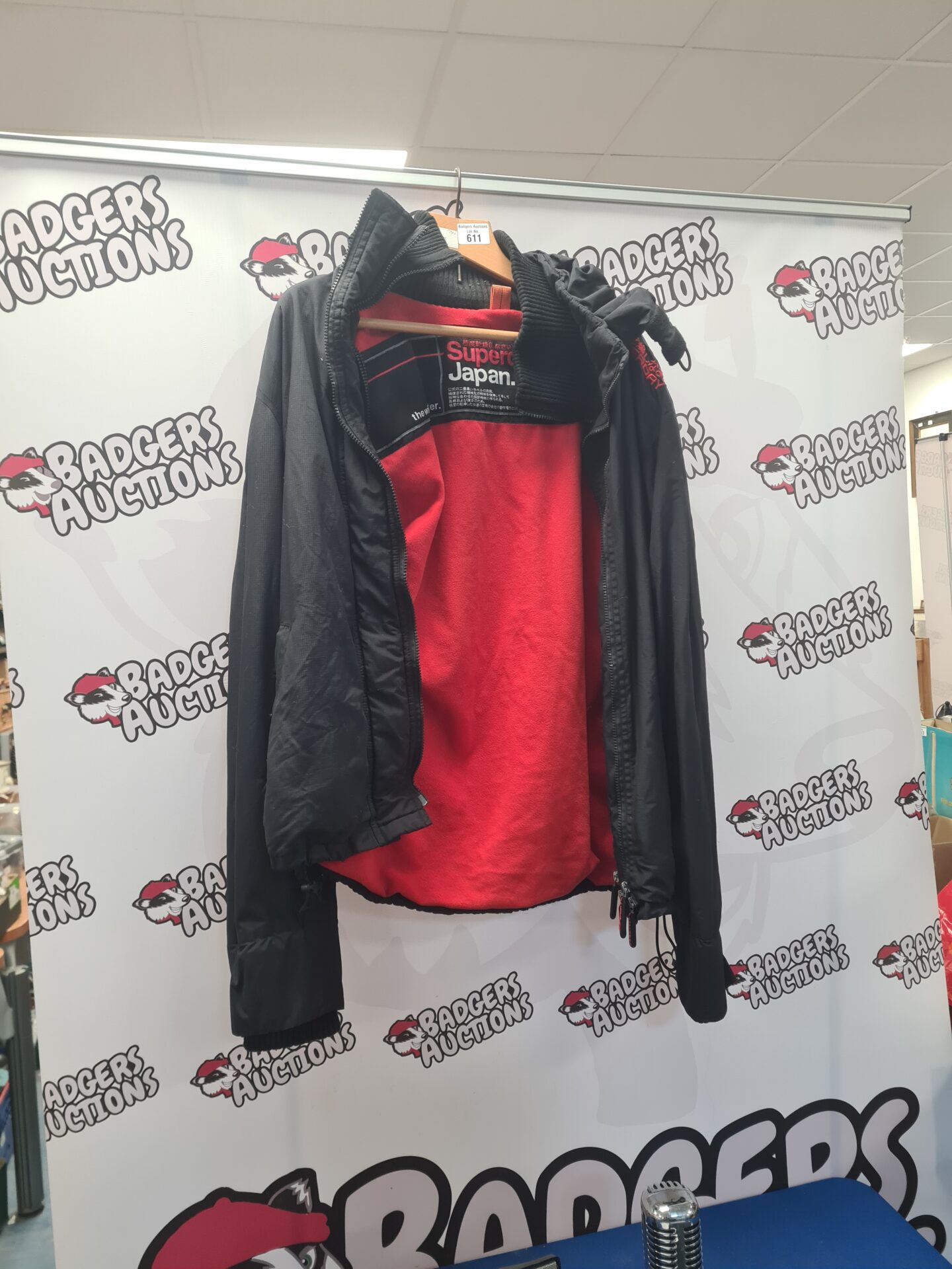 This is a Superdry Wintercheater jacket, a classic design known for its warmth and weather resistance. This particular jacket is a size XXL and features a hooded design for added protection. It’s crafted with a durable outer shell and insulated interior, making it ideal for colder weather conditions. The jacket boasts a modern, stylish look with Superdry branding.