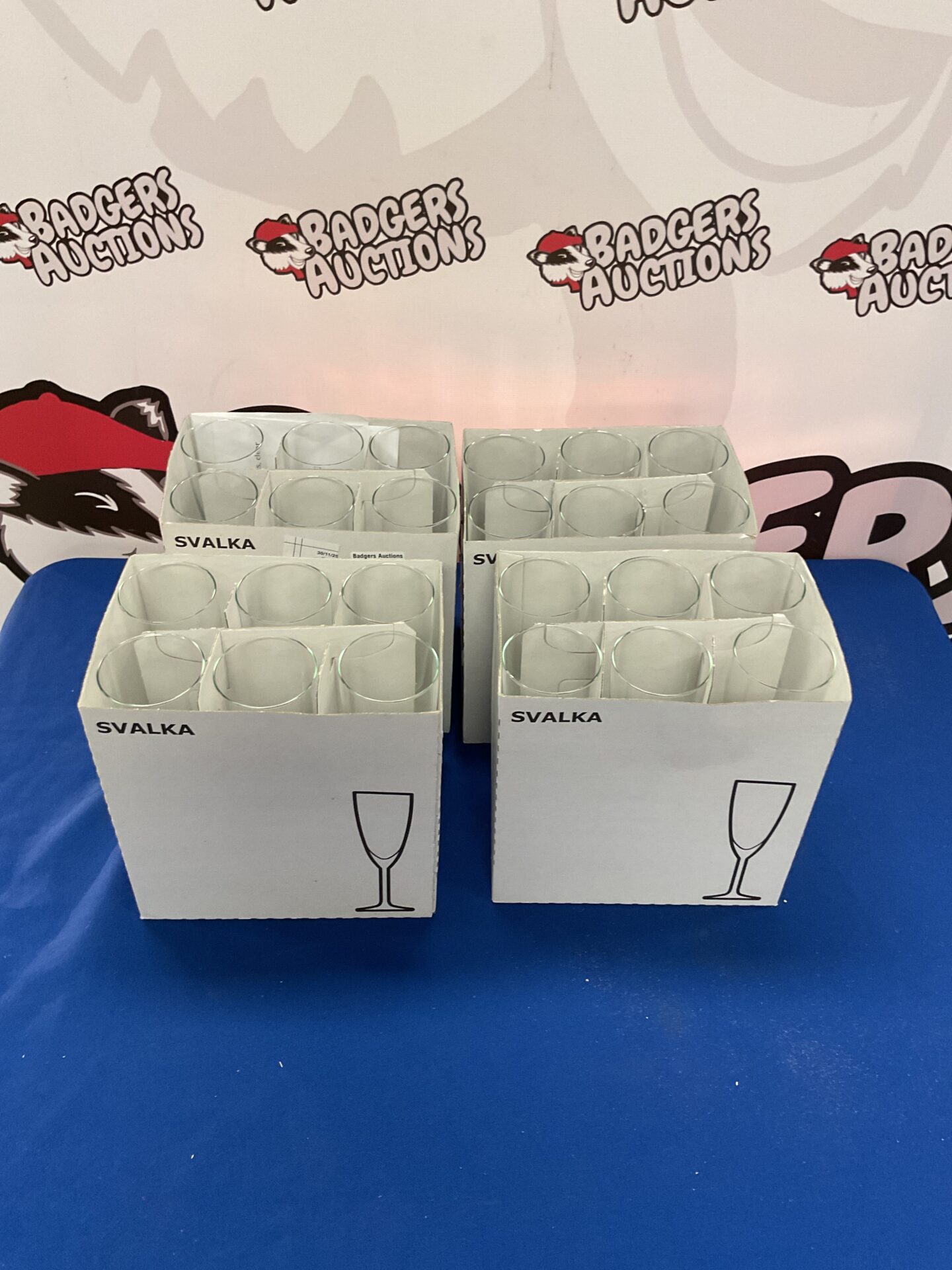 The condition of these glasses appears consistent across the boxes, though a detailed inspection would be recommended. These glasses are ideal for those setting up a home bar, replacing existing glassware, or for collectors of Ikea designs. The Svalka series is known for its affordability and practicality, making this a useful and attractive addition to any collection.