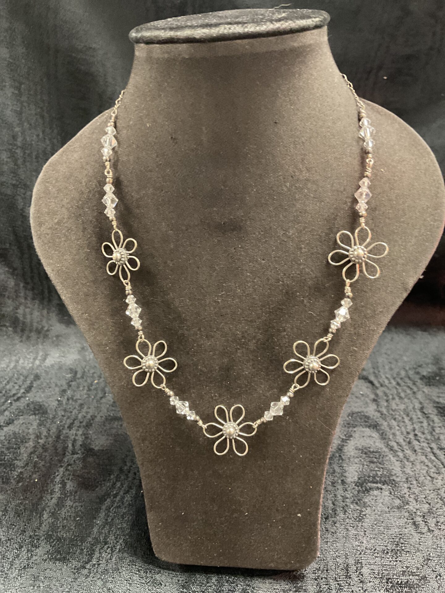 825 Swarovski Crystal And Sterling Silver Flower 16”necklace
