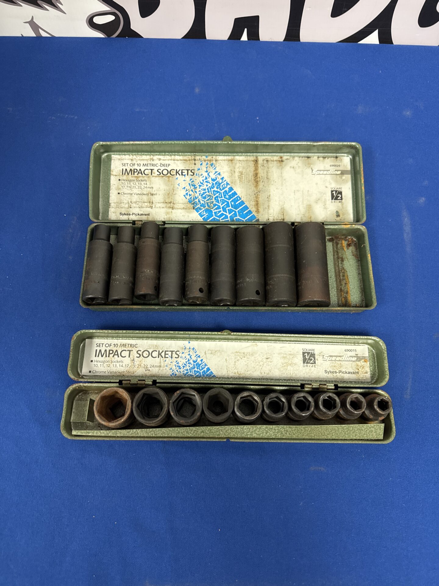 These sockets appear to be in good used condition, showing signs of wear consistent with workshop use. They retain their original markings and are a desirable addition for tool collectors or professional mechanics seeking quality, vintage equipment. These sockets are a testament to the durability and craftsmanship of Sykes Pickavant tools.
