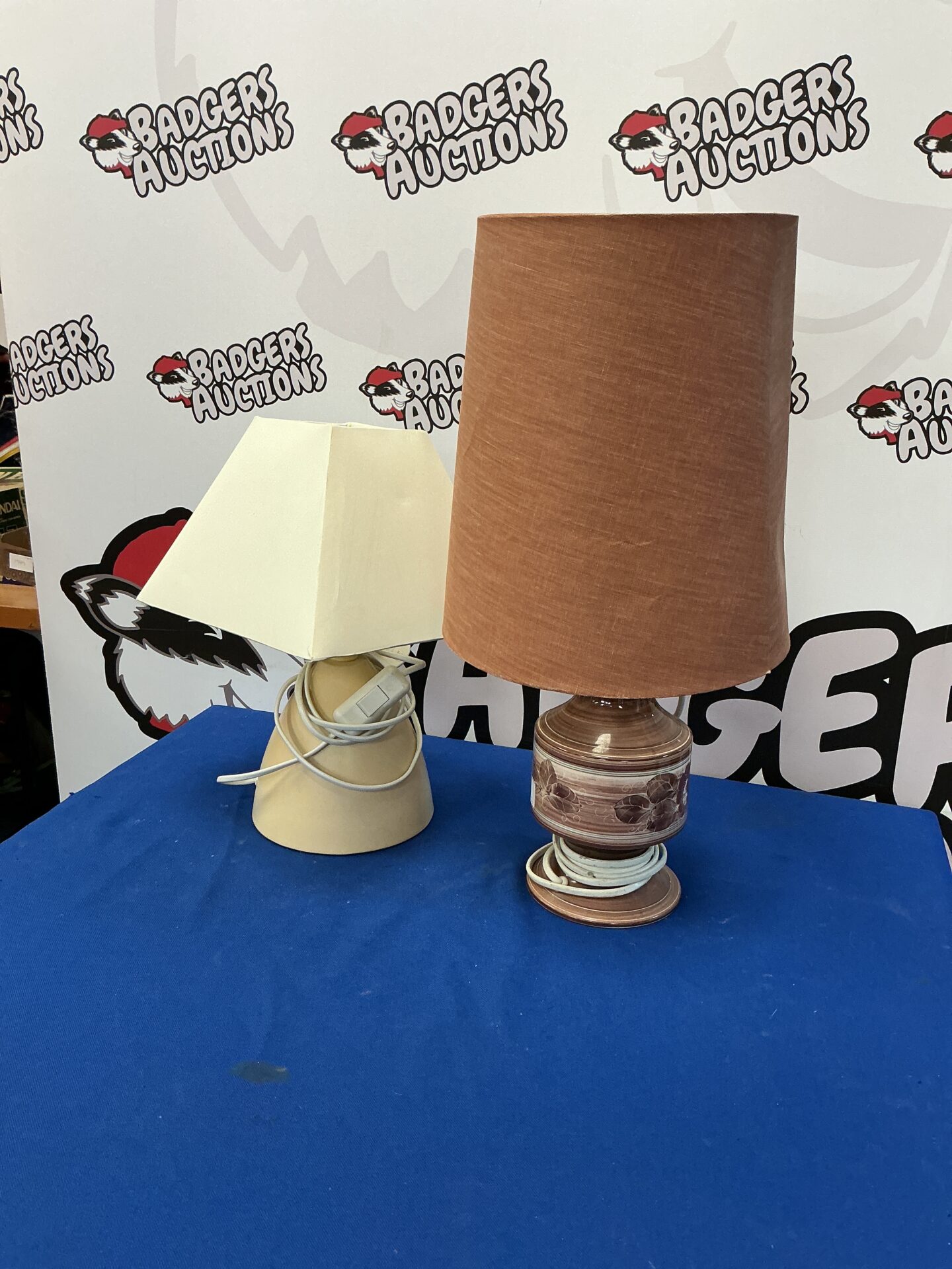 Both lamps are in good vintage condition, with minor wear consistent with age and use. The lampshades show some slight discolouration, but are structurally sound. These lamps would be a welcome addition to any collection of vintage lighting or mid-century modern decor. They offer a stylish and functional way to illuminate a space, and their classic design ensures they will remain a timeless piece for years to come.