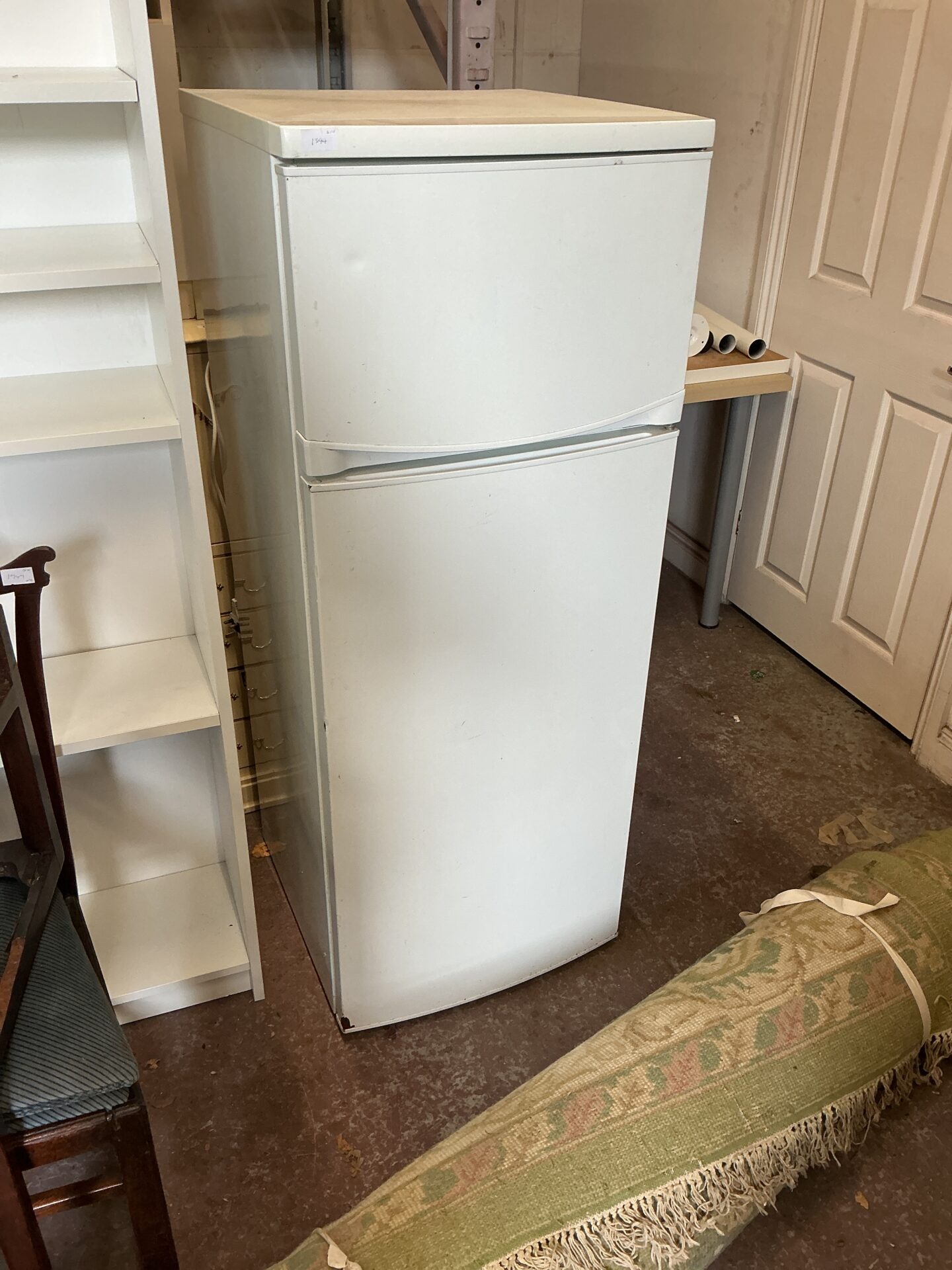 This fridge freezer is presented for auction in a used condition. It shows signs of previous use and may require cleaning or servicing. Despite this, it could be of interest to those seeking an affordable appliance or a project for restoration, or for use in a garage or workshop.