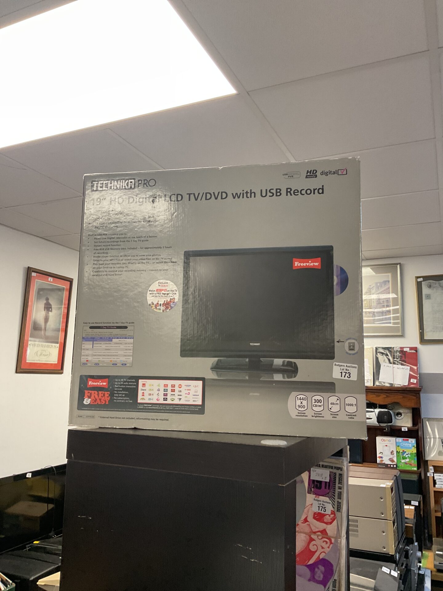 This is a Technika Pro 19” HD digital LCD TV with an integrated DVD player and USB recording functionality. This compact television offers both standard and digital viewing options, making it versatile for various setups. The inclusion of a DVD player and USB recording adds to its convenience, allowing users to enjoy their favourite movies and record content directly onto a USB drive.