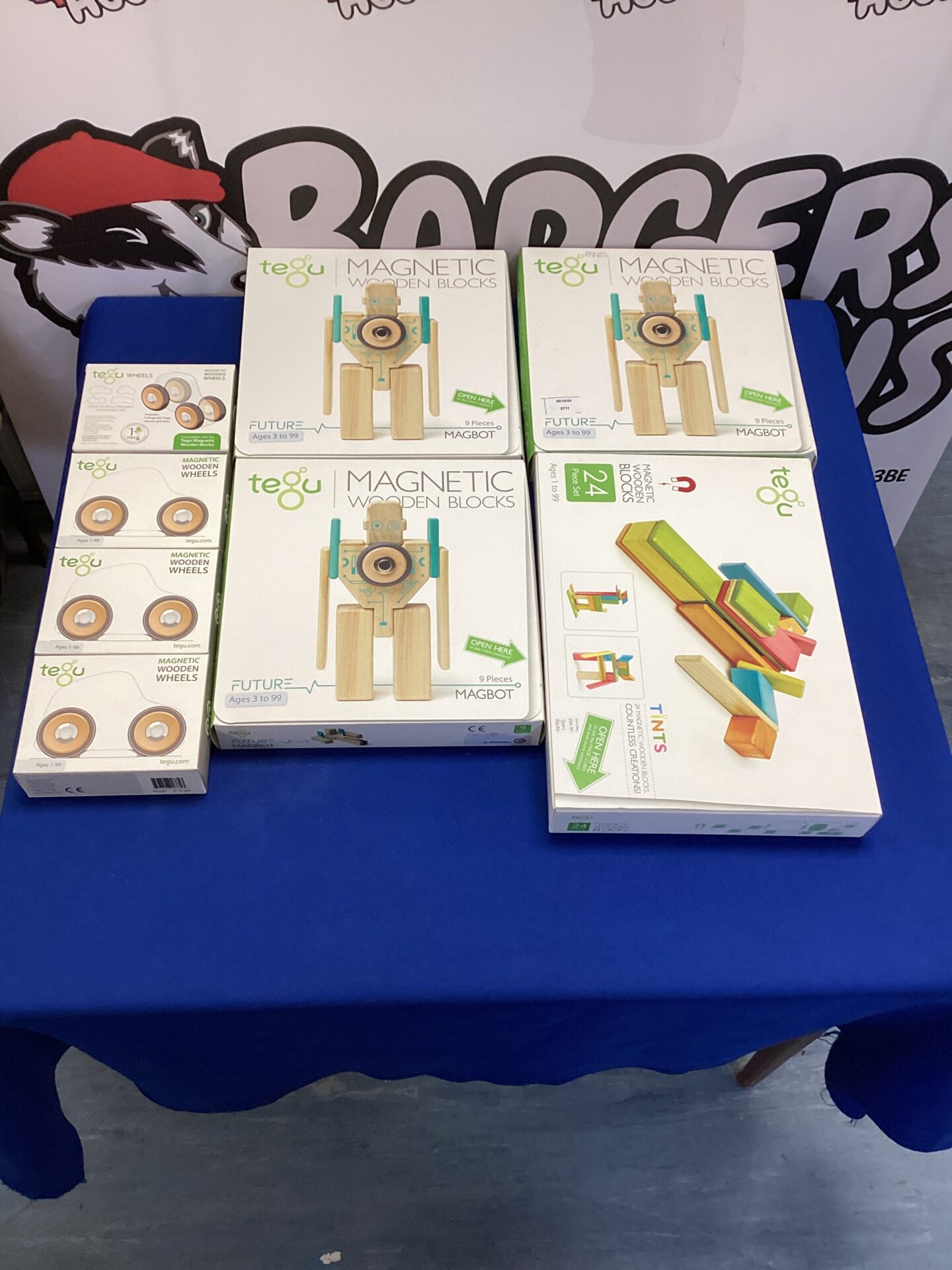 These are eight Tegu magnetic wooden blocks, a beautifully designed construction toy that encourages creativity and problem-solving. Crafted from sustainably sourced hardwood and featuring hidden magnets, these blocks allow for endless building possibilities. The vibrant colours and smooth finish make them appealing to both children and adults, fostering imaginative play and developing spatial reasoning skills.