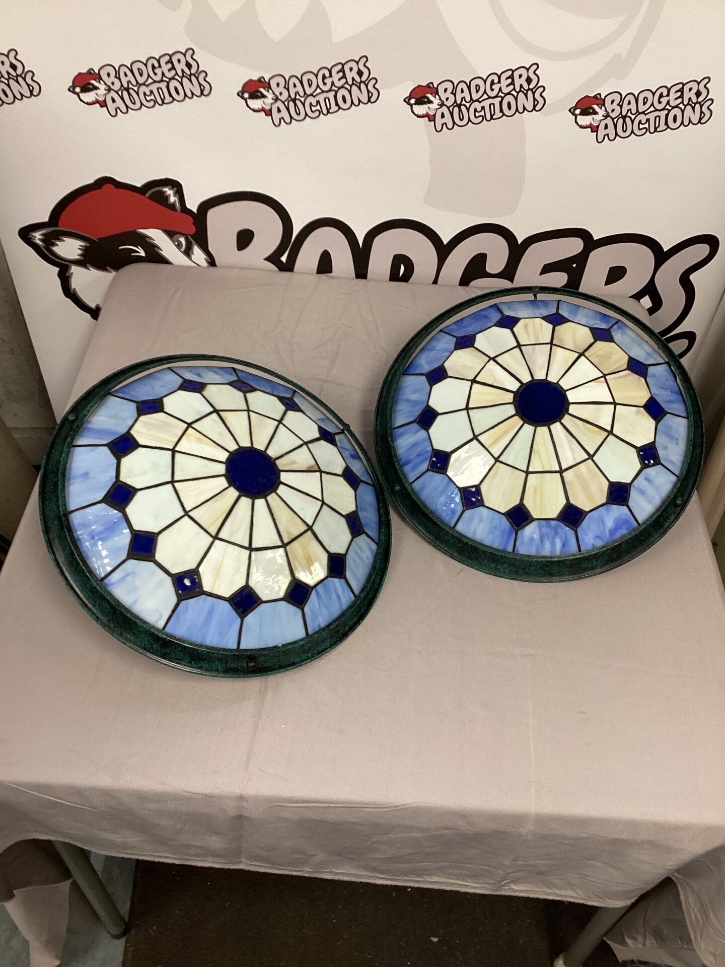 The shade appears to be in good condition, with no obvious cracks or significant damage to the glass. While it may show some minor signs of wear consistent with its age, this only adds to its character and appeal. This piece would be a welcome addition to any collection of vintage lighting or stained glass art, and is sure to be a conversation starter.