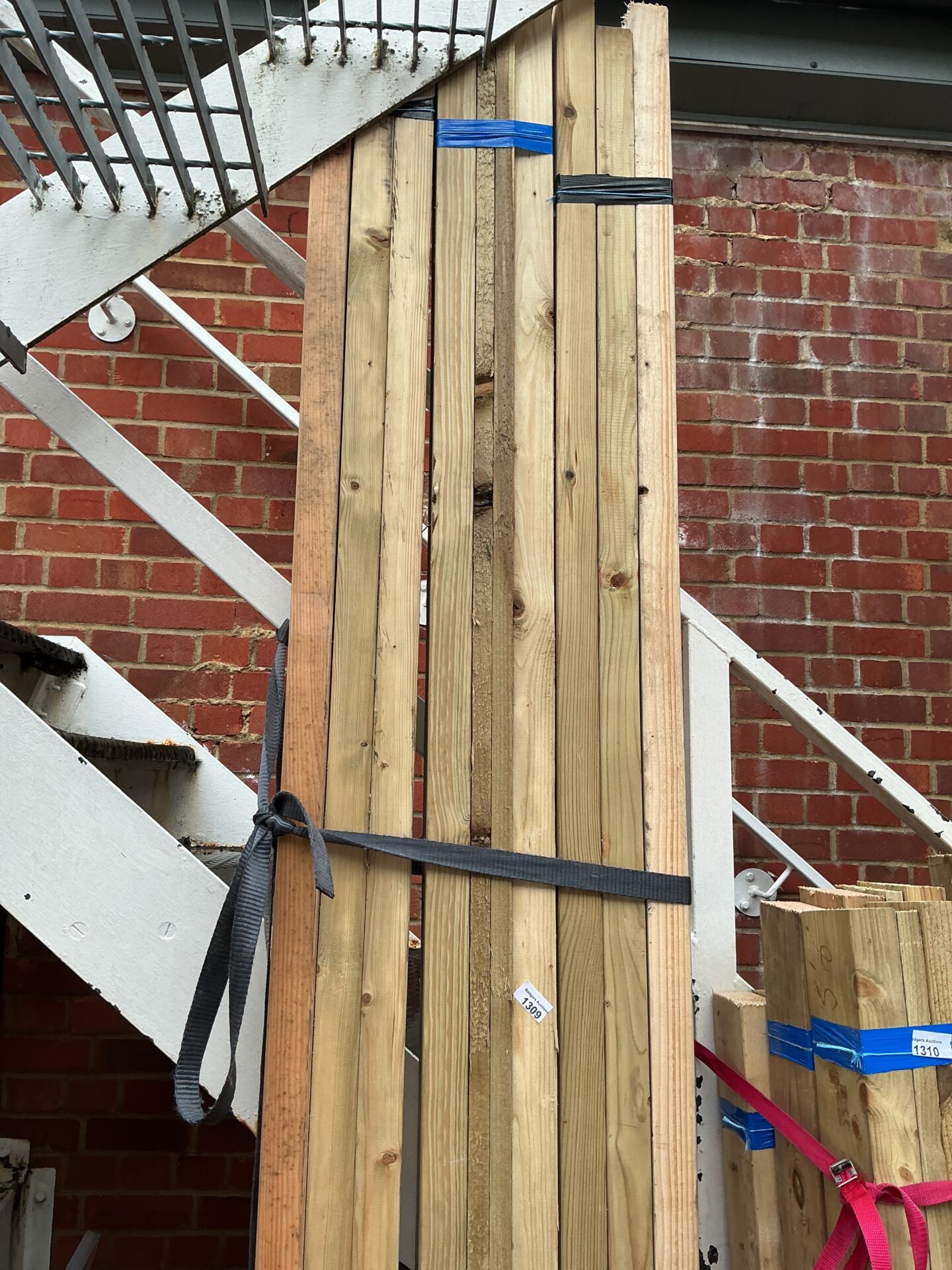 The timber appears to be in used condition, with some signs of wear and tear consistent with handling and storage. The timber is untreated, meaning it has not been preserved or protected against the elements. This makes it ideal for projects where a natural finish is desired, or where the timber will be treated by the end user.