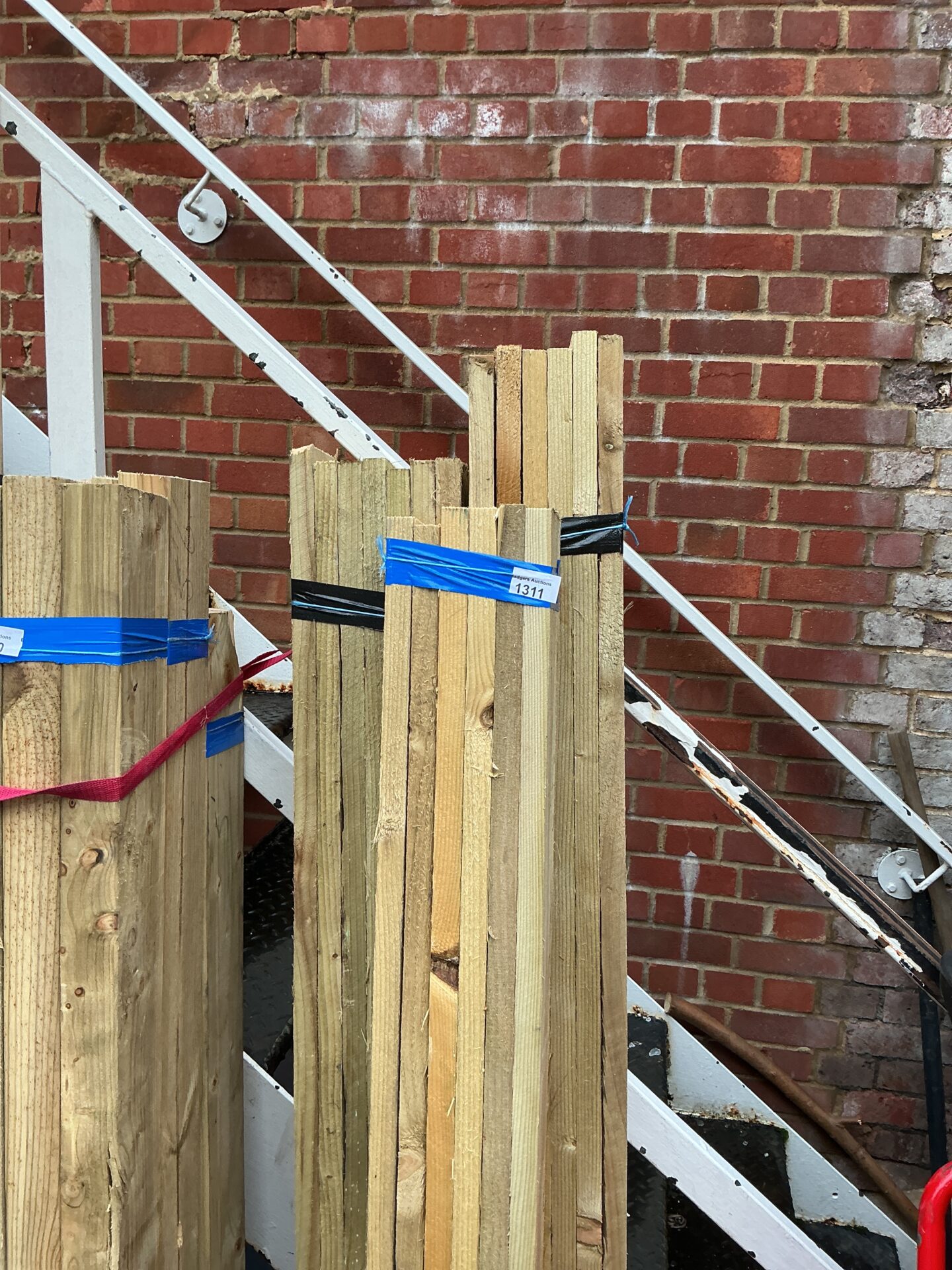 These are three bundles of timber, each appearing to be approximately 5’6” in length. The timber appears to be softwood, suitable for a variety of construction and DIY projects. The bundles are secured with blue strapping for ease of handling and transport.
