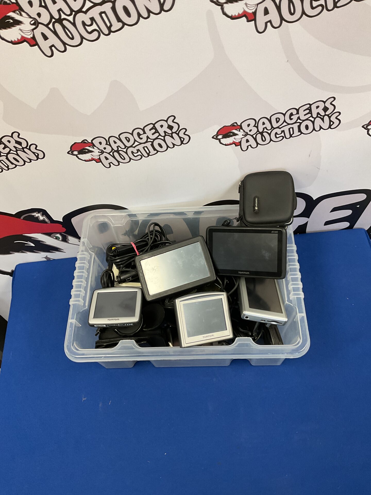 This lot comprises a collection of TomTom satellite navigation devices. These portable GPS units were designed for in-car use, providing turn-by-turn directions and points of interest. The devices vary in screen size and features, reflecting different models within the TomTom range.