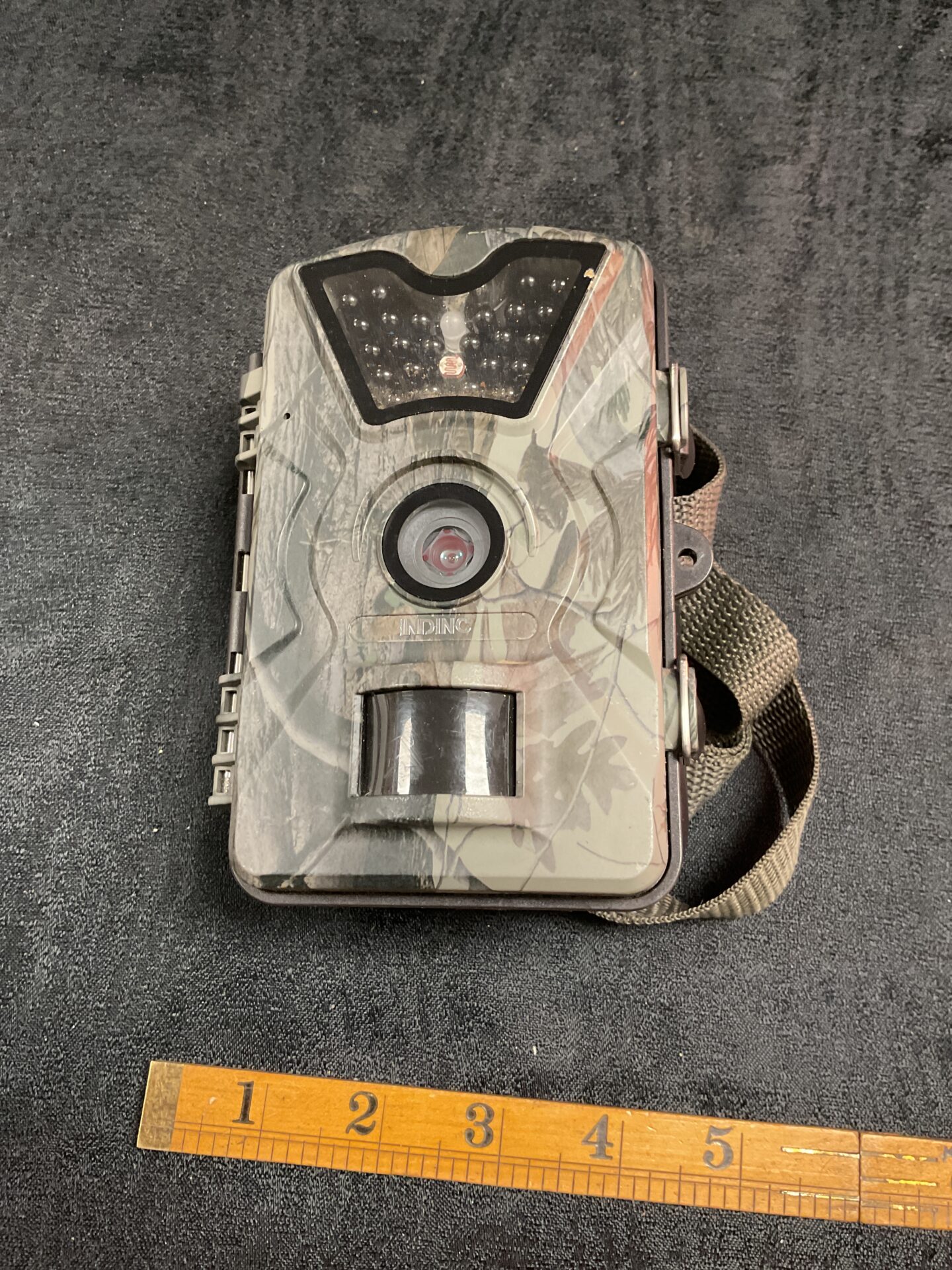 This trail camera shows signs of prior use and may not be fully functional. The exterior exhibits wear consistent with outdoor exposure. Despite this, it could be of interest to collectors of vintage or obsolete technology, or to those seeking parts for repair or modification. It presents an opportunity to examine the evolution of outdoor surveillance technology.