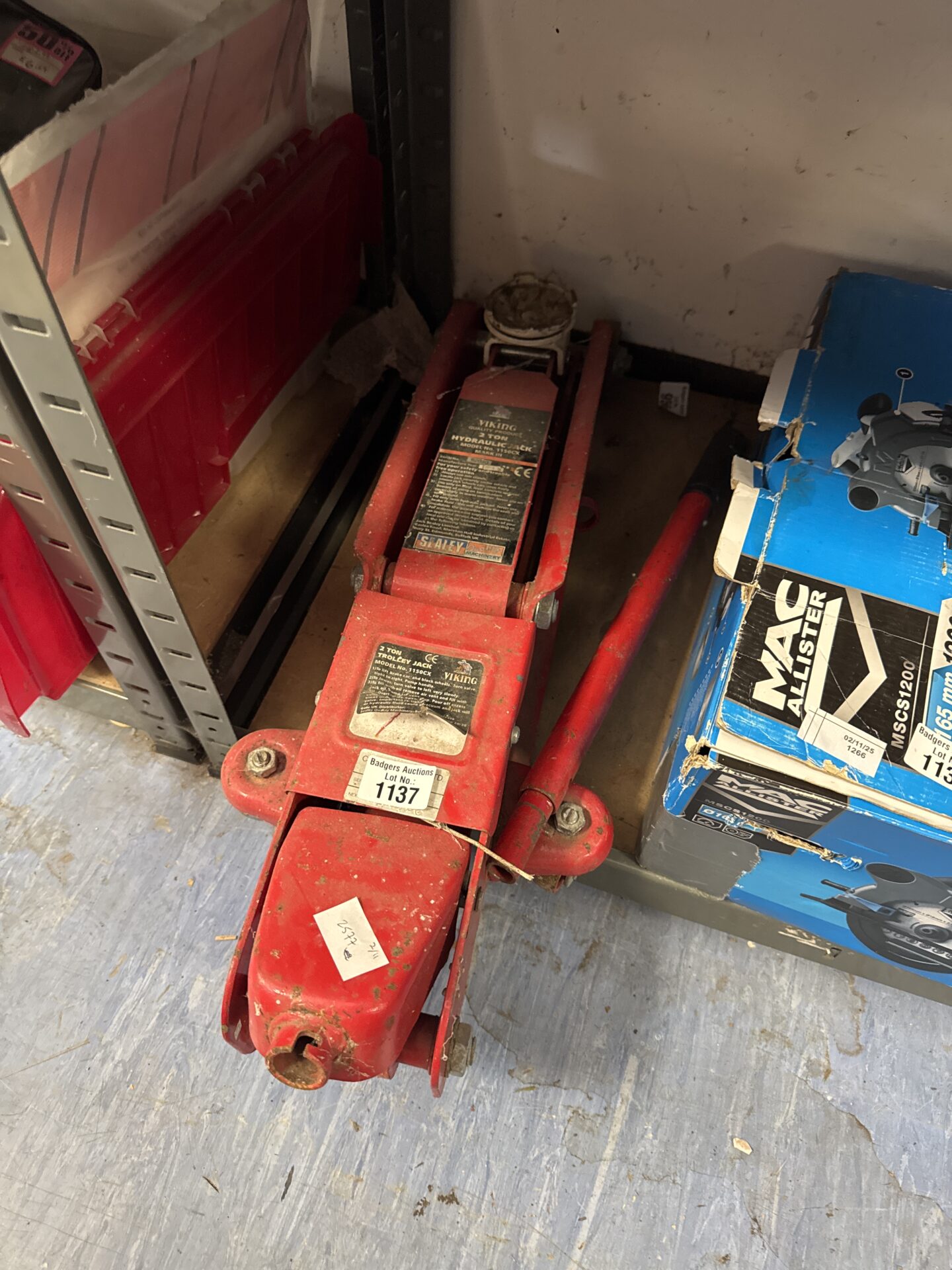 This is a Sealey Viking 2 ton hydraulic trolley jack, designed for lifting vehicles during maintenance and repair work. The jack features a robust steel construction and a long handle for increased leverage. It is a commonly used piece of garage equipment, known for its reliability and ease of use.