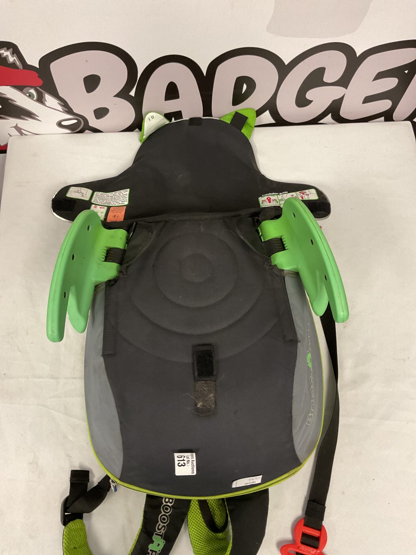This Trunki BoostApack shows signs of previous use and may benefit from cleaning. It presents an opportunity for a collector of travel accessories or a parent seeking a portable car seat solution. Its distinctive design and brand recognition make it a desirable item for those familiar with Trunki products.