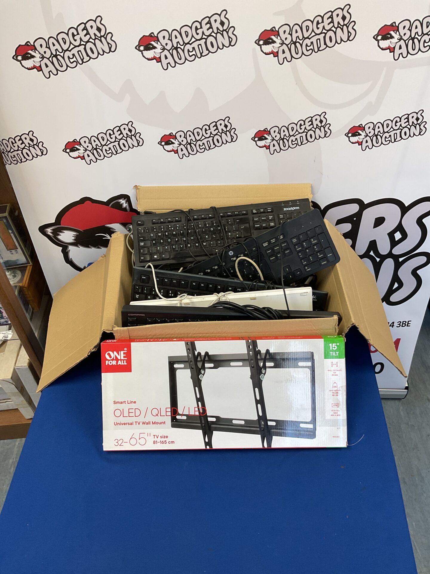 151 Smart Line Universal Tv Wall Mount 32-65” And Box Of Keyboards Incl. Hp, Compaq, Zoostorm