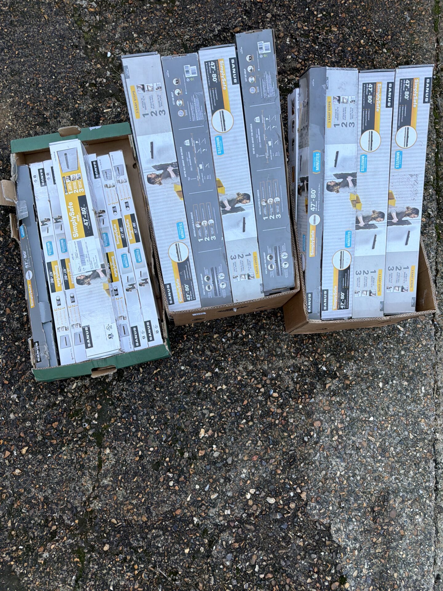 These TV wall mounts appear to be new in their original packaging. While the condition appears good, an assessment of functionality has not been undertaken. This lot may appeal to home theater enthusiasts, installers, or collectors of home entertainment equipment.