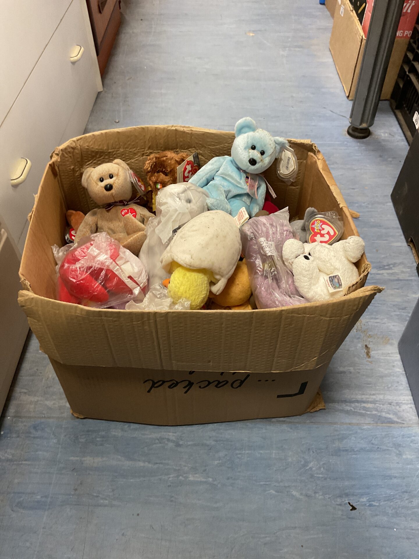 This lot features a collection of Ty Beanie Babies, the popular plush toys that gained immense popularity in the 1990s. The assortment includes various designs and characters, offering a nostalgic trip for collectors and enthusiasts. These small, bean-filled plush toys are known for their unique personalities and collectible value, making them a delightful addition to any toy collection.