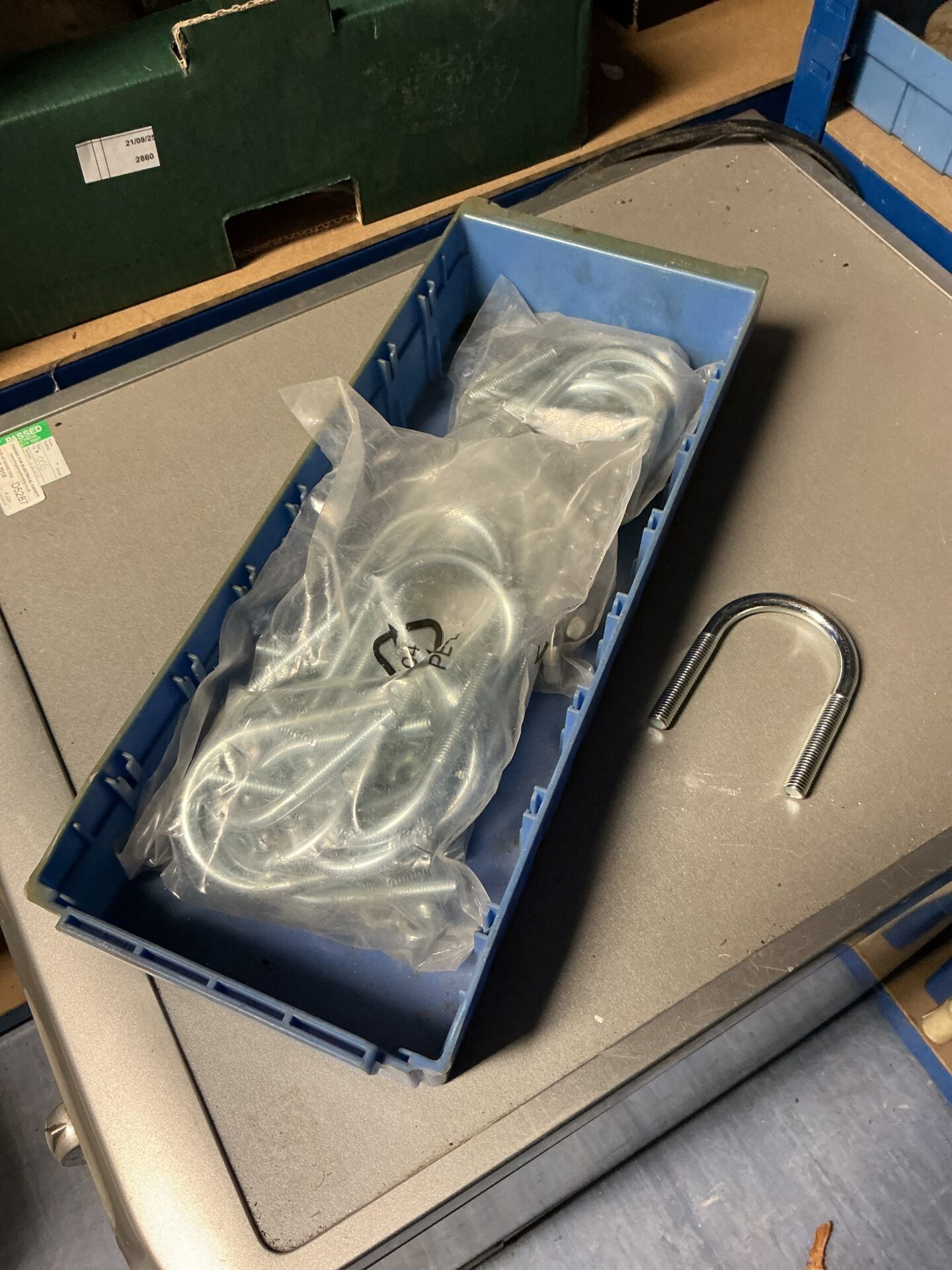 This lot contains two packs of new U-bolts, likely intended for automotive or industrial applications. These U-bolts are designed to securely fasten pipes or rods, providing a strong and reliable connection. The metal construction ensures durability and resistance to wear and tear, making them suitable for demanding environments.