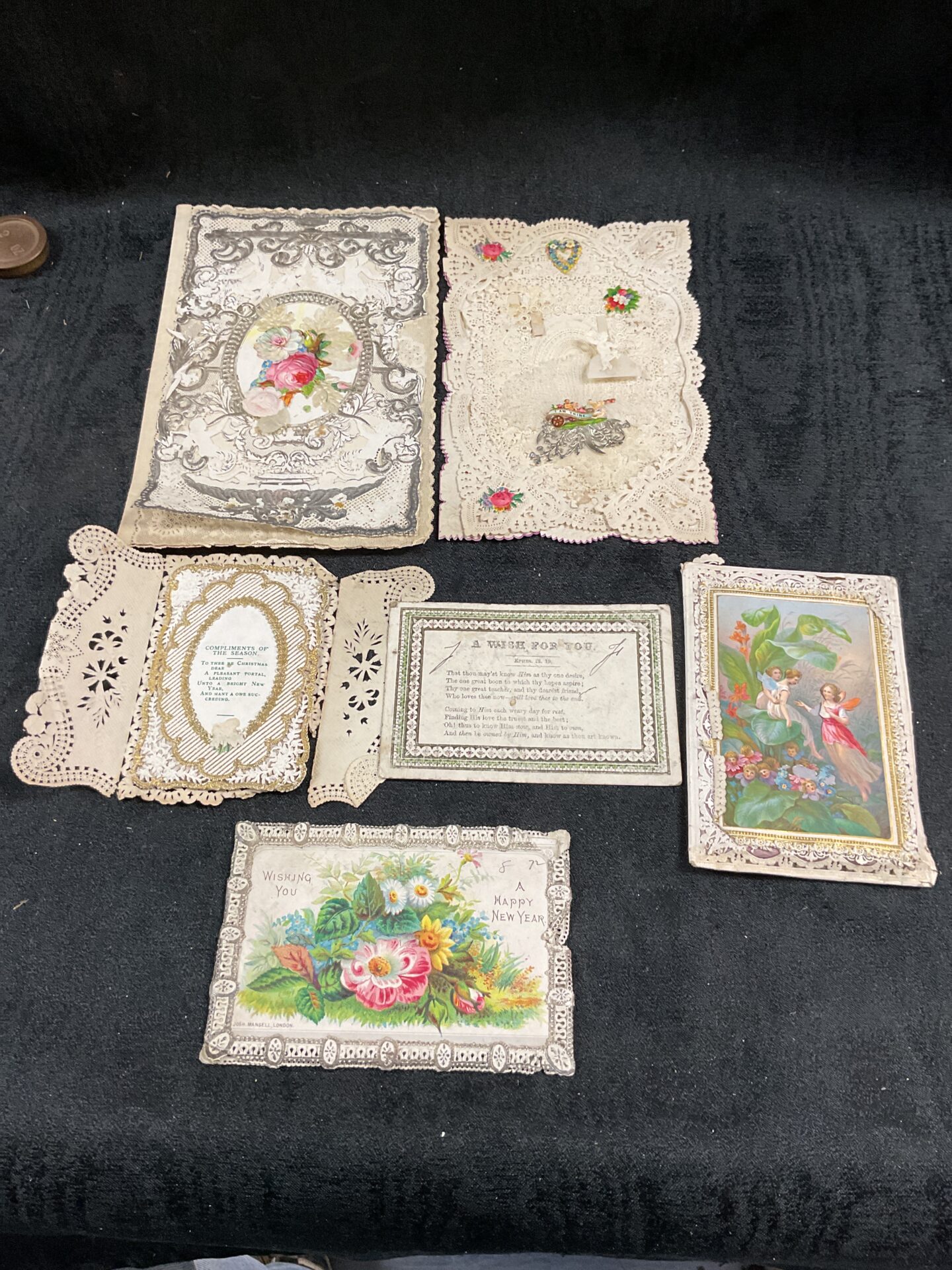 These cards exhibit signs of age and handling, consistent with their antique nature. Some may display minor wear, such as edge chipping or slight foxing, but these imperfections contribute to their character and authenticity. Collectors of Victorian ephemera, greeting cards, or historical paper items will find these cards a delightful addition to their collections, offering a tangible connection to the past and a beautiful representation of Victorian artistry.