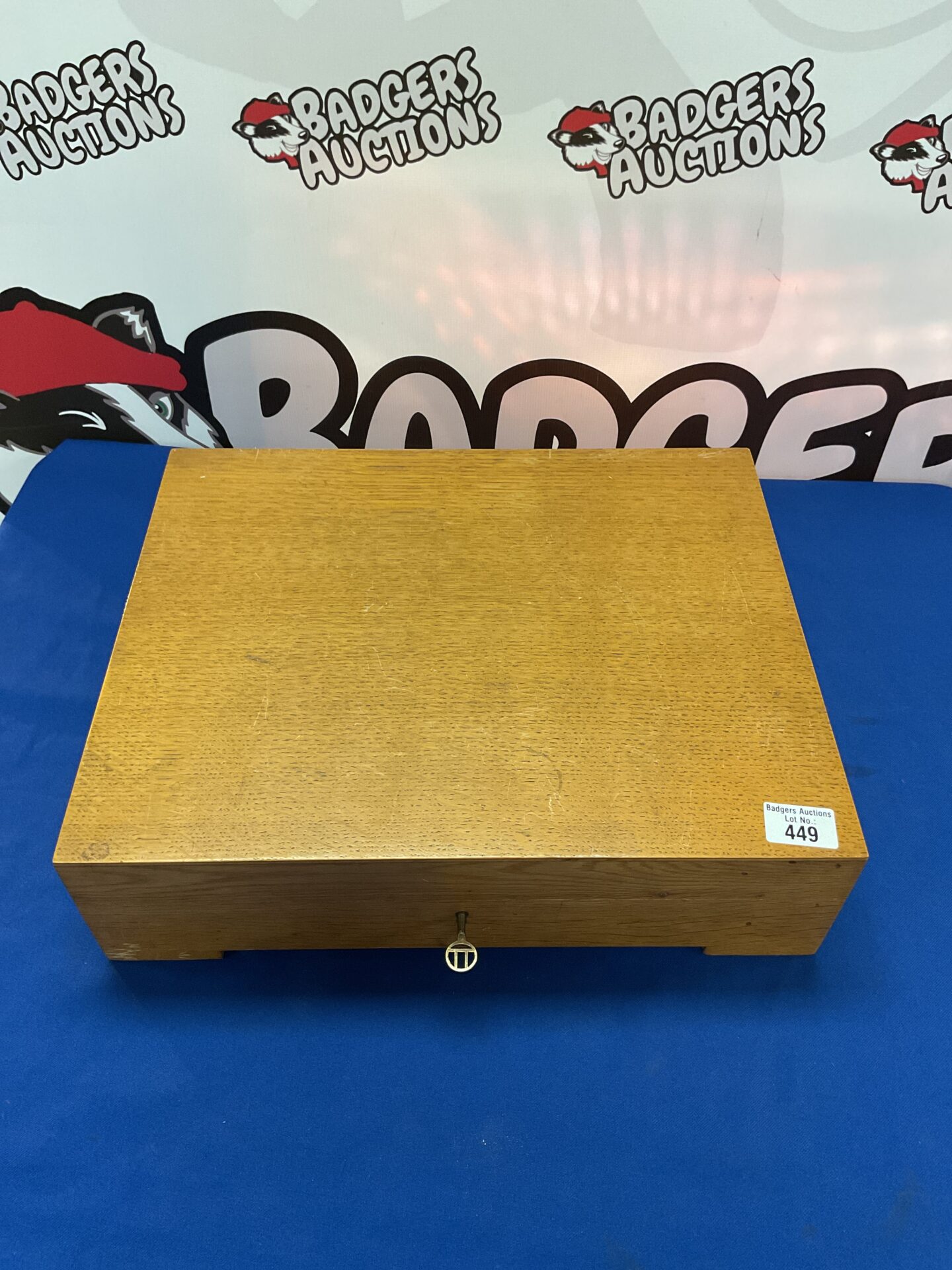 This is a Victorian-era teak box, originally designed to house a set of cutlery. The box exhibits the rich, warm tones characteristic of teak wood, and its construction suggests a quality craftsmanship typical of the period. The box’s simple, elegant design would have been a functional and decorative addition to a Victorian dining room.