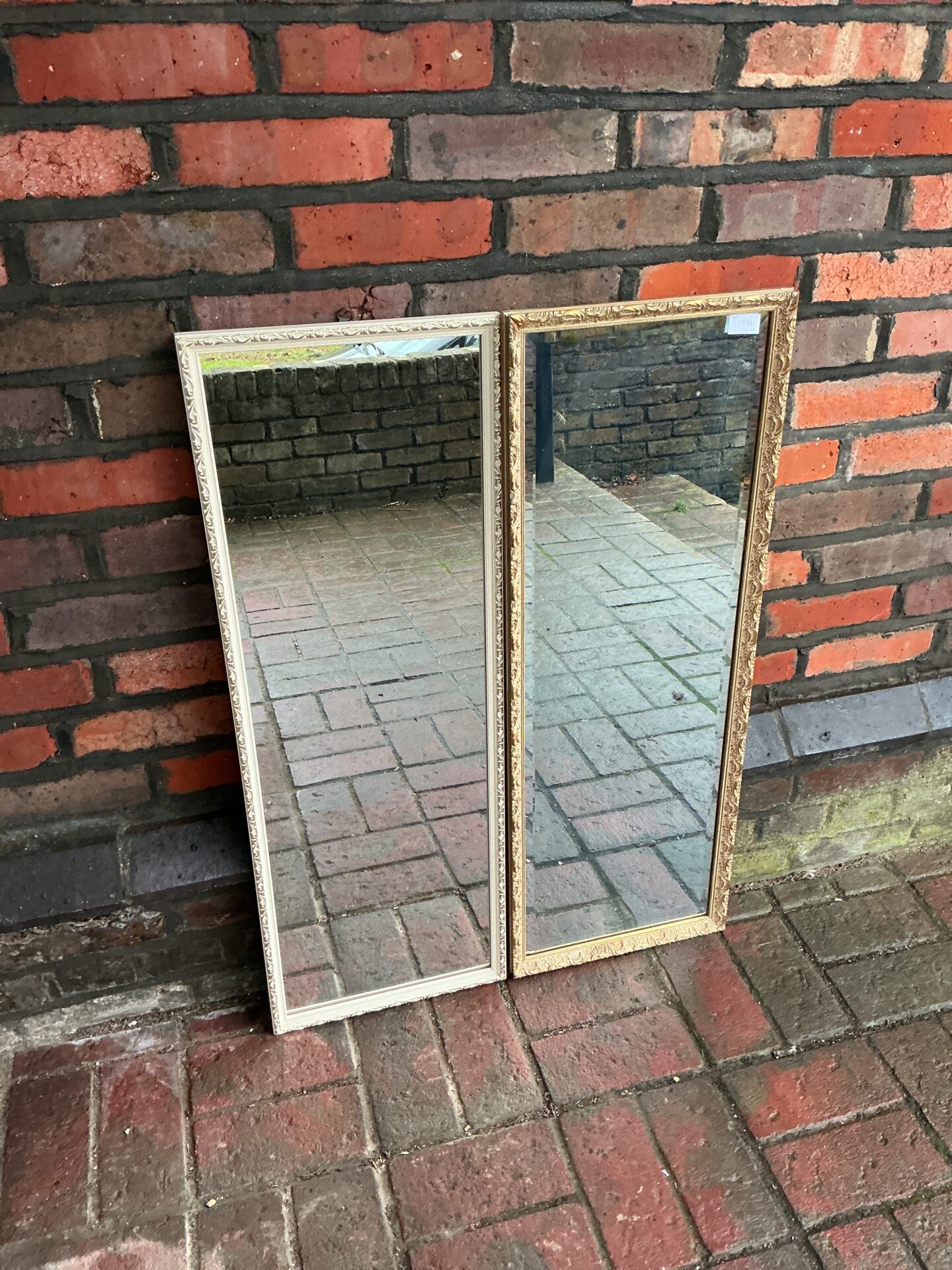 These mirrors show signs of age and use, with some minor imperfections to the frames and potential silvering loss to the glass. These imperfections are consistent with their age and contribute to their antique appeal. Collectors and enthusiasts of vintage home decor will appreciate their unique character and potential to add a touch of nostalgia to any space.