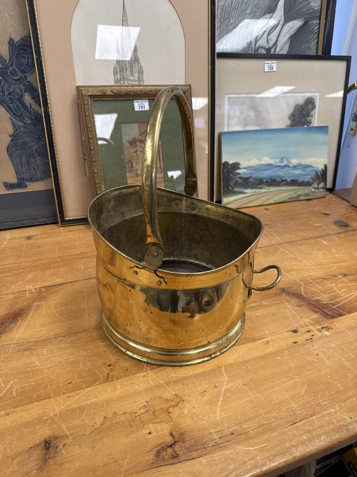 The bucket is in good vintage condition, showing signs of age and wear consistent with its history. While there may be some minor dents or scratches, these imperfections add to its character and authenticity. This piece would be a wonderful addition to a collection of antique fireplace accessories or vintage brassware. Its classic design and enduring appeal make it a desirable item for collectors and those seeking to add a touch of historical charm to their homes.