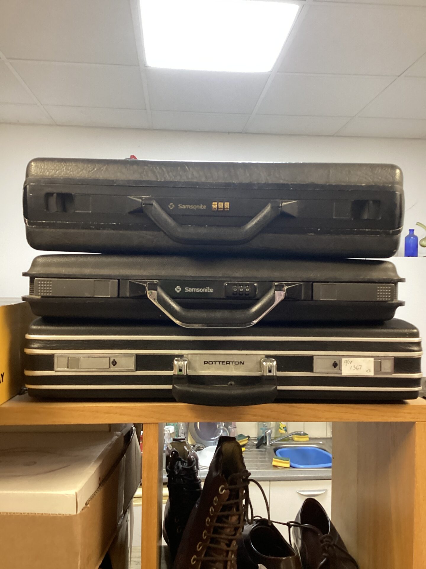 These briefcases show signs of wear consistent with age and use, adding to their vintage charm. While they may exhibit scuffs, scratches, or minor imperfections, they remain structurally sound. Collectors and enthusiasts will appreciate their retro aesthetic and the enduring quality of brands like Samsonite and Potterton, making them desirable additions to any vintage luggage collection or stylish accessories for everyday use.