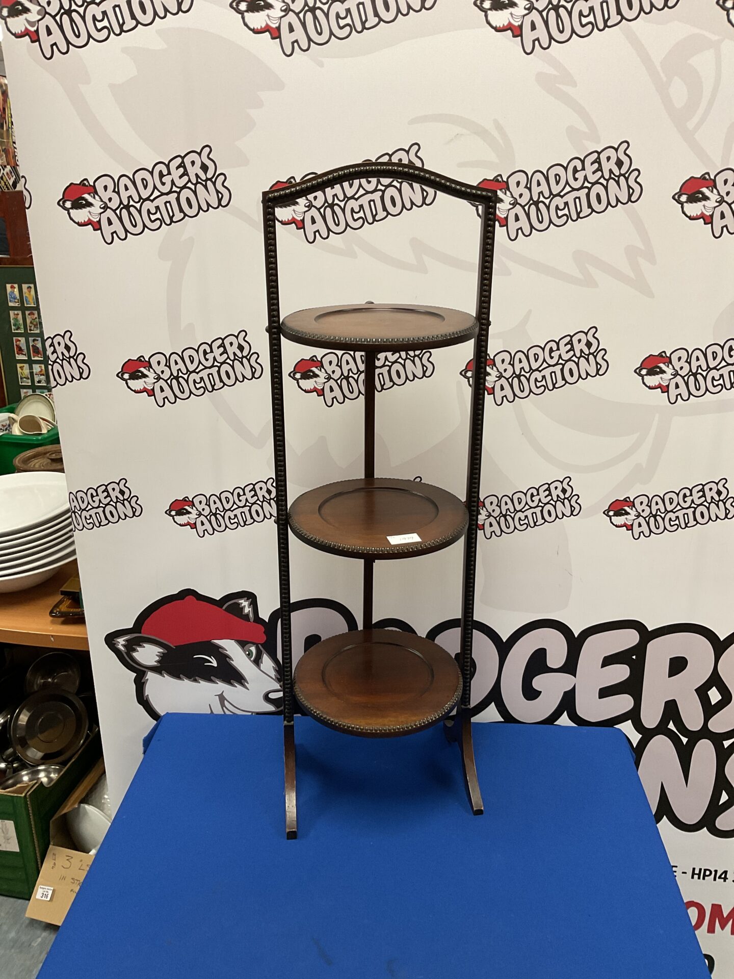 017 Vintage 3 Tier Folding Mahogany Cake Stand