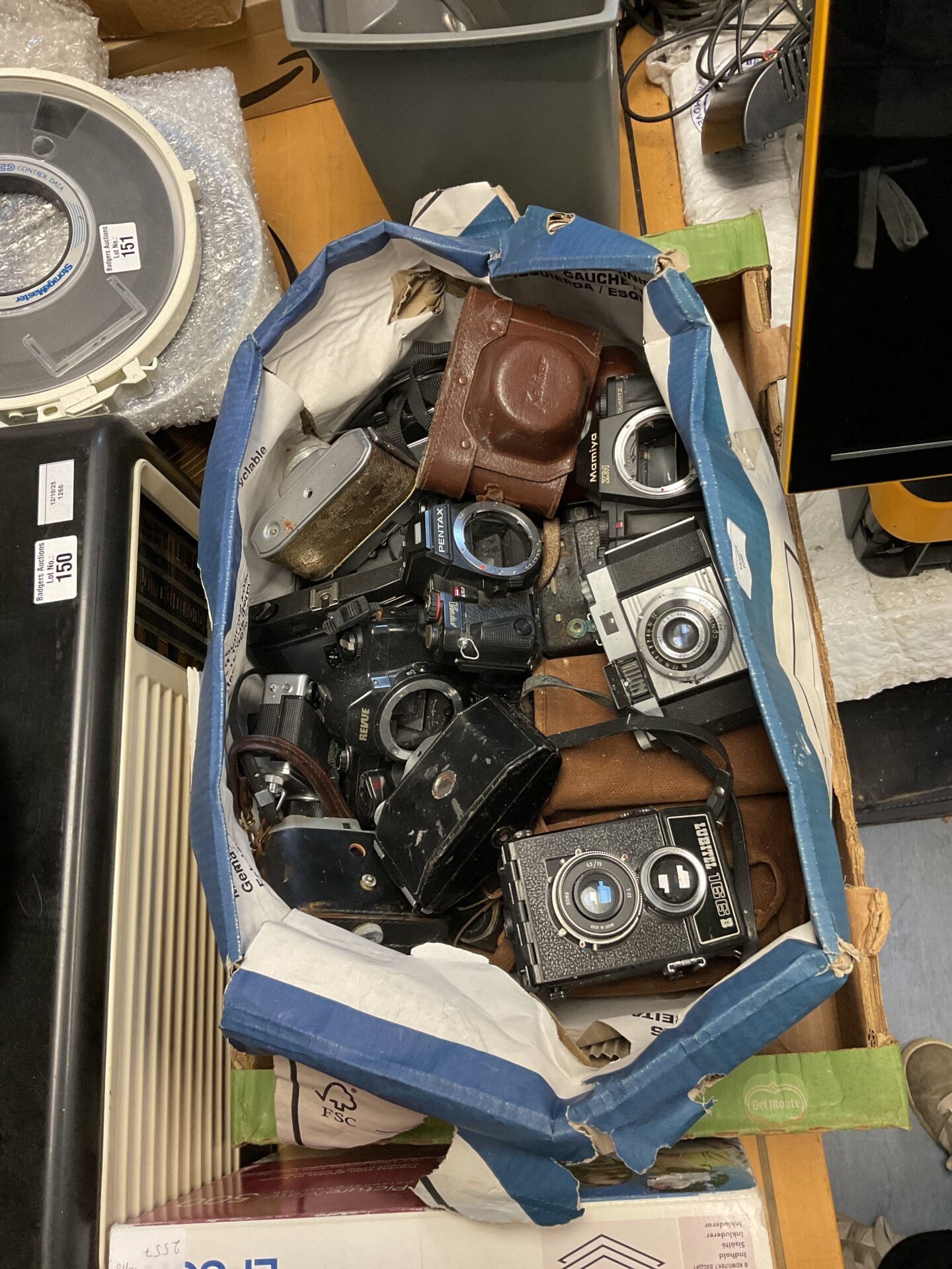 153 Box Of Mixed Vintage Camera Bodies Incl. Pentax, Lubitel, Revue, Mamiya