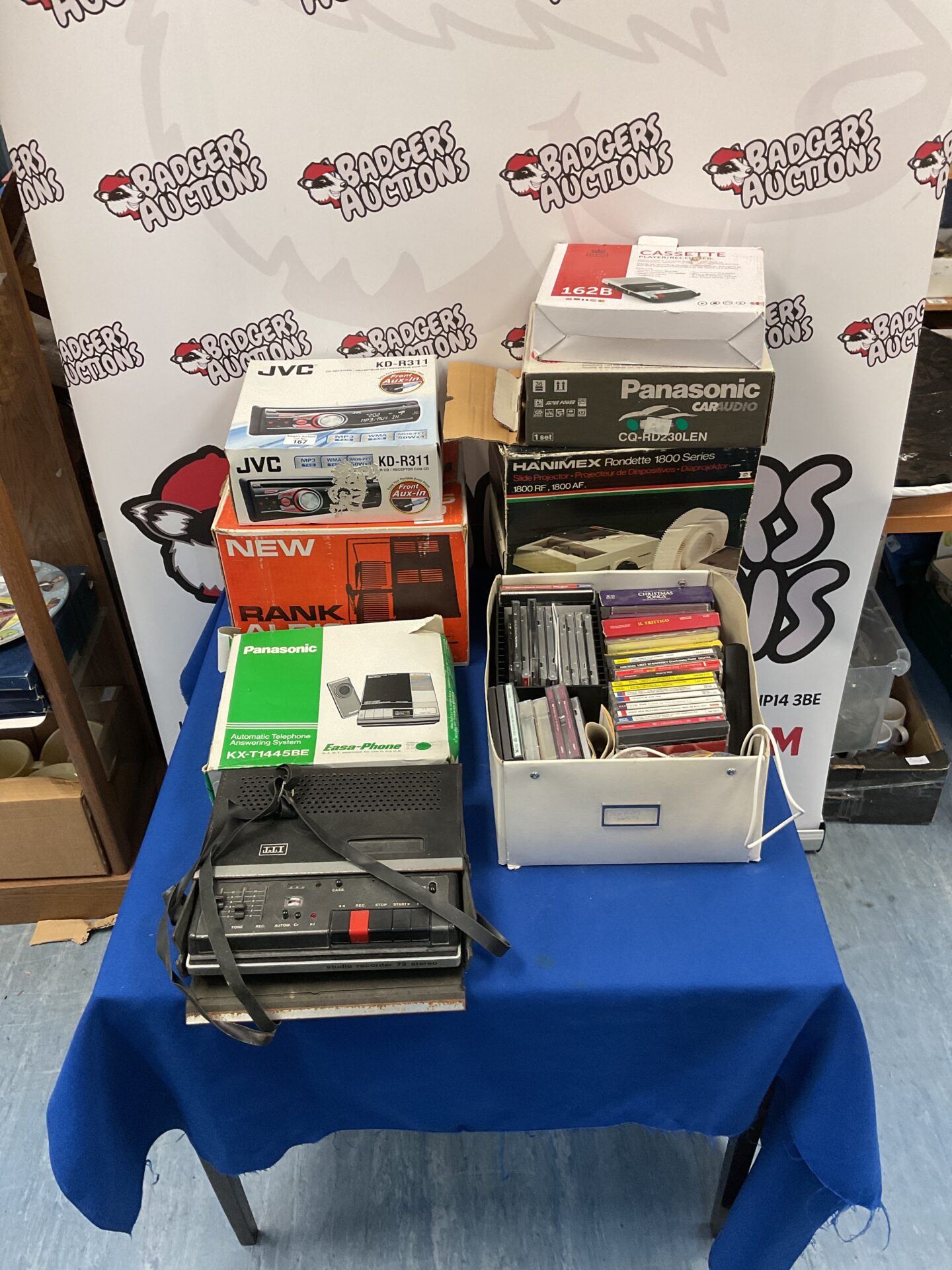167 Mixed Lot Of Electricals Incl. Jvc And Panasonic Car Audio Units, Hanimex Slide Projector, Rank Aldis 1000, Gpo Cassette Recorder, Panasonic Answer Machine, And Box Of Cds