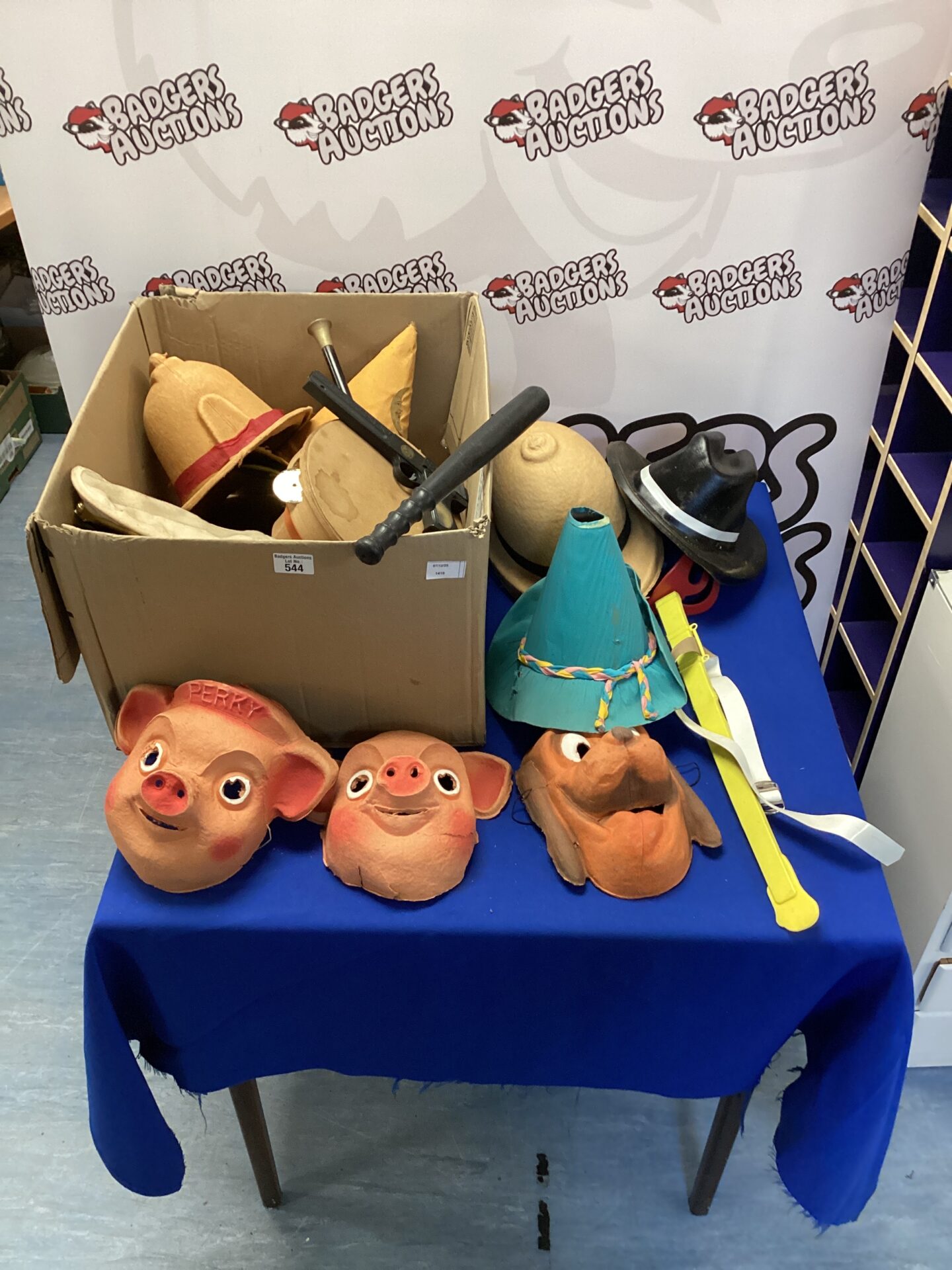 544 Box Of Vintage Cardboard Childrens Dress Uphats & Masks Inc Pluto & Perky