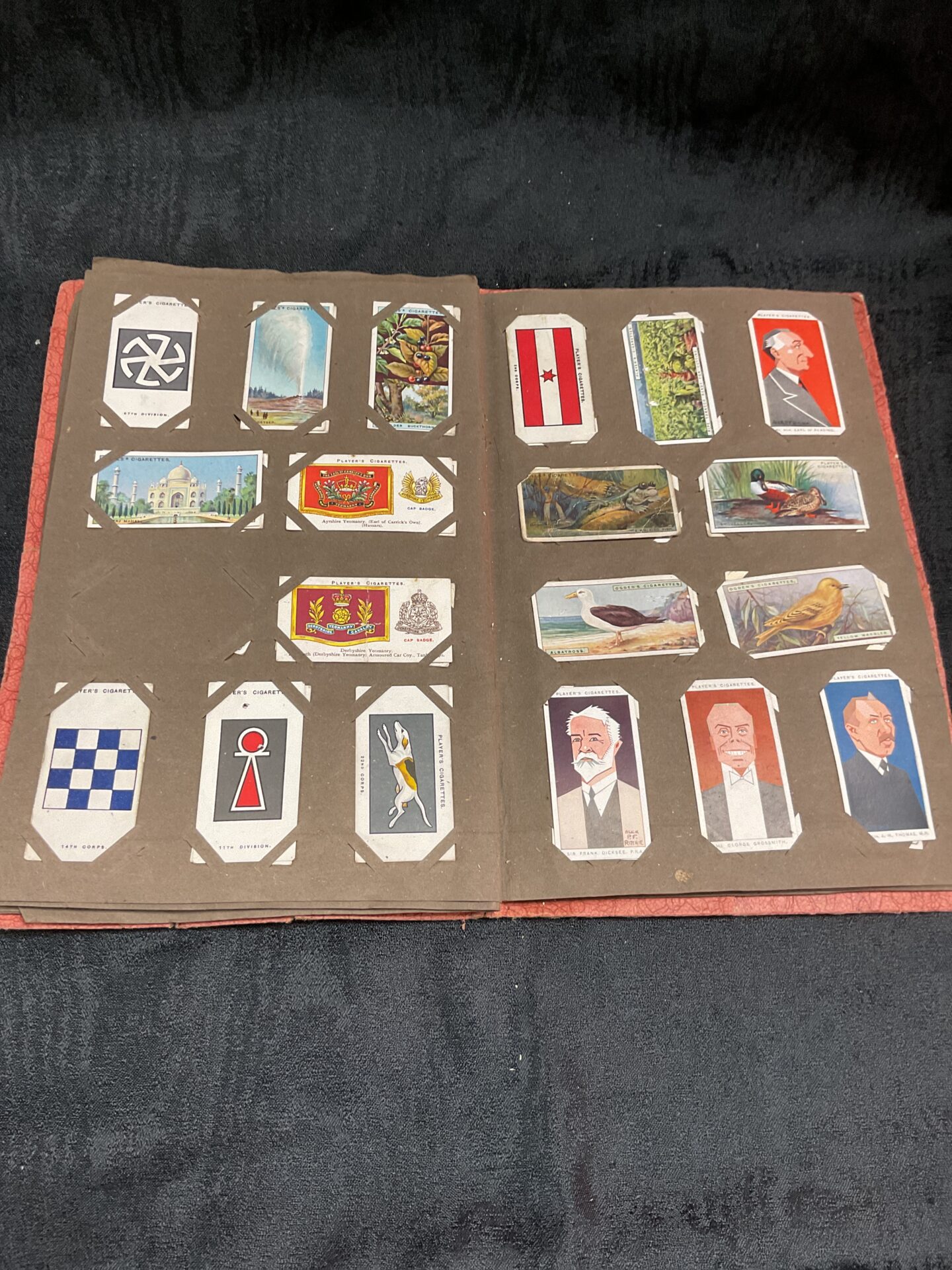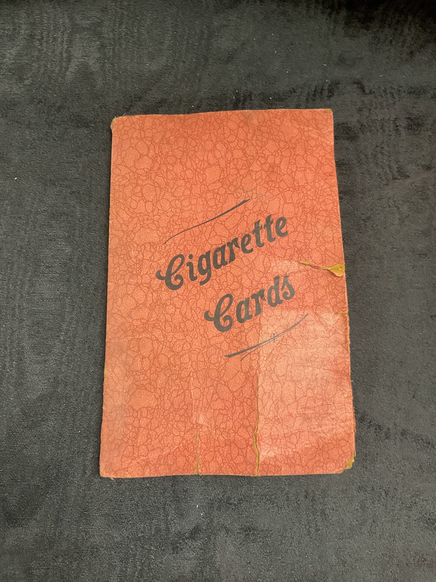 The album shows signs of age and wear, consistent with its vintage nature. The cards within exhibit varying degrees of condition, with some showing minor edge wear or creasing. This album is of interest to collectors of ephemera, tobacco cards, and vintage collectibles, offering a glimpse into a bygone era of collecting and advertising.