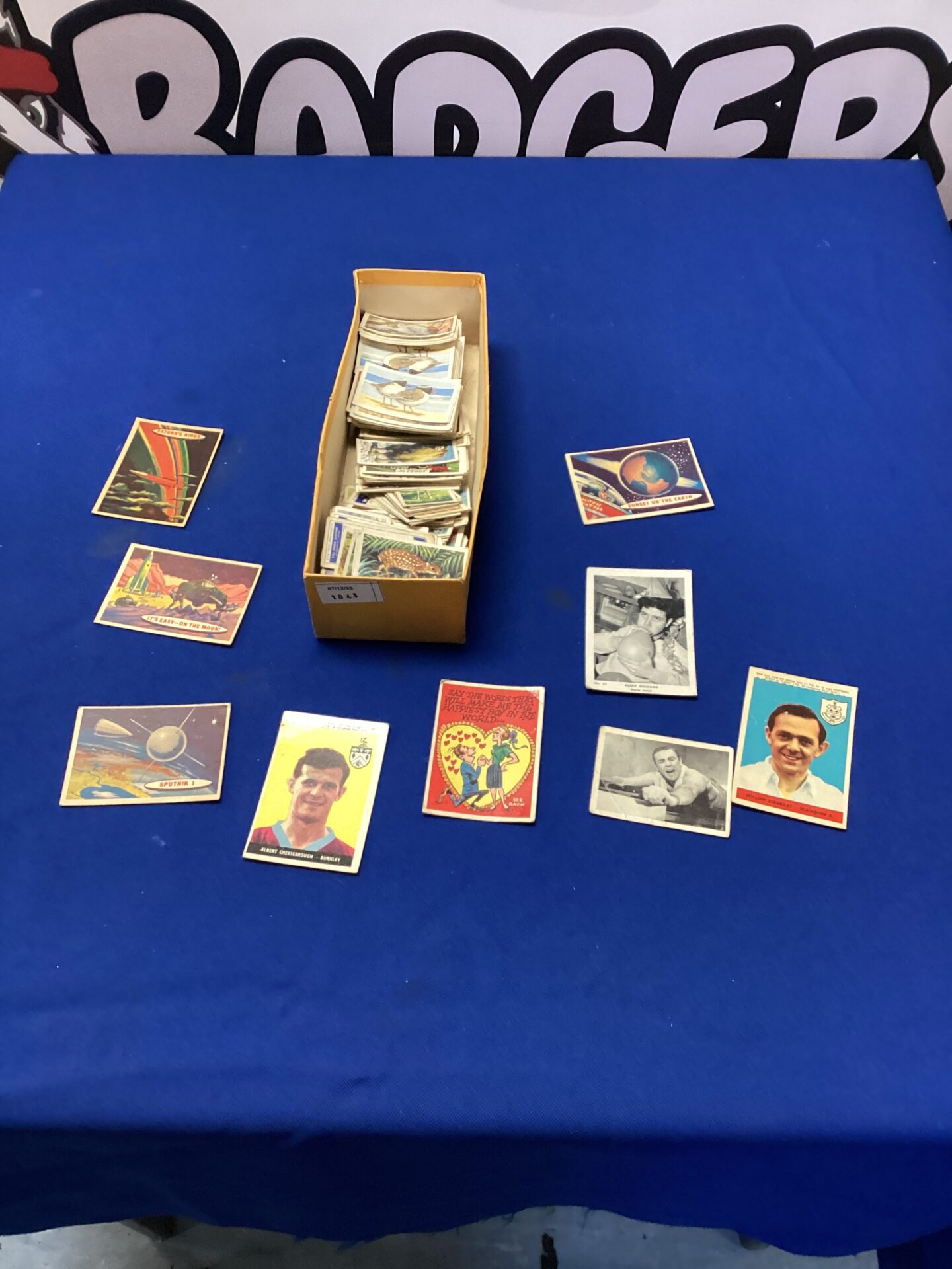This lot comprises a small collection of vintage cigarette cards and other collectible cards. The cards appear to cover a variety of subjects, typical of those collected in the early to mid 20th century. The collection offers a glimpse into popular culture and design aesthetics of the period, and would be of interest to collectors of ephemera and social history.