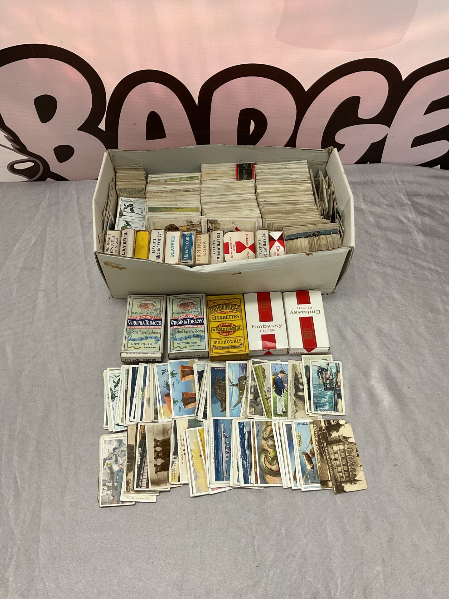 The condition of the cards and boxes varies, with signs of age and handling expected. Some cards may exhibit creasing, edge wear, or minor staining, while the boxes may show scuffs, tears, or fading. Despite these imperfections, the collection holds appeal for collectors of tobacco ephemera, vintage advertising, and card collecting. The lot presents an opportunity to acquire a piece of social history and add to an existing collection or start a new one.