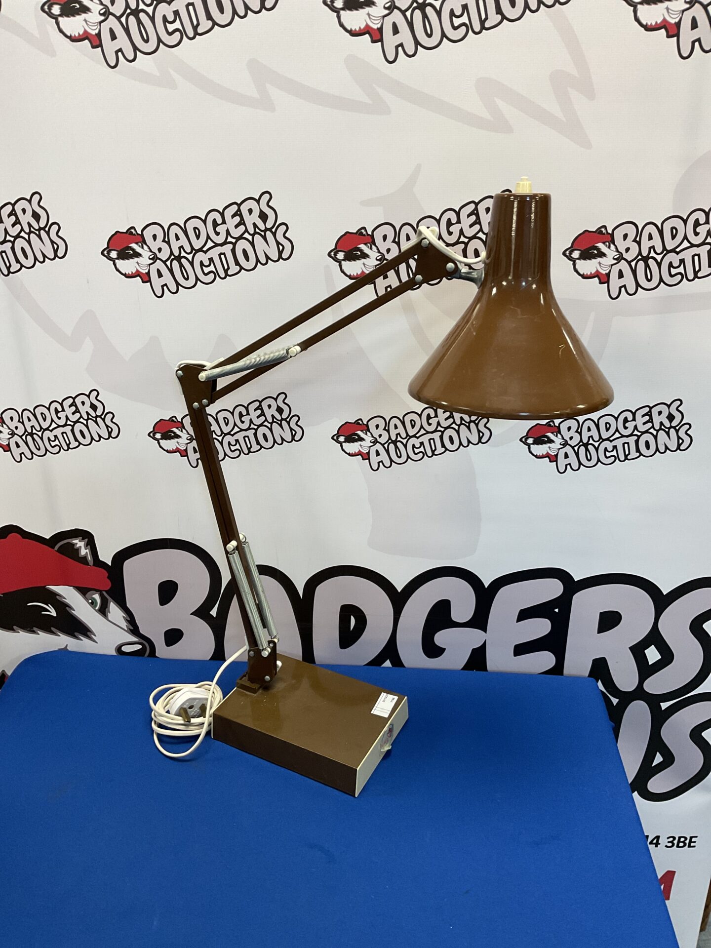 This is a vintage desk lamp, reminiscent of the iconic Anglepoise design. Featuring a classic adjustable arm and a conical shade, this lamp offers focused task lighting with a mid-century modern aesthetic. The lamp’s design allows for versatile positioning, making it ideal for desks, workbenches, or reading nooks.
