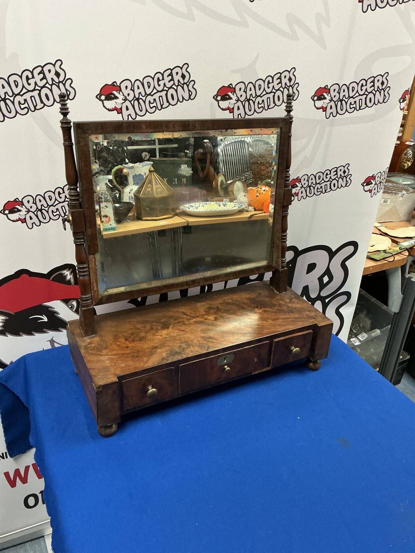 This is a vintage wooden dresser featuring an integrated mirror. The dresser boasts a dark wood finish, likely mahogany or a similar hardwood, and includes several drawers for storage. The design suggests a classic style, potentially from the mid-20th century, and would serve as a beautiful addition to a bedroom or dressing area.