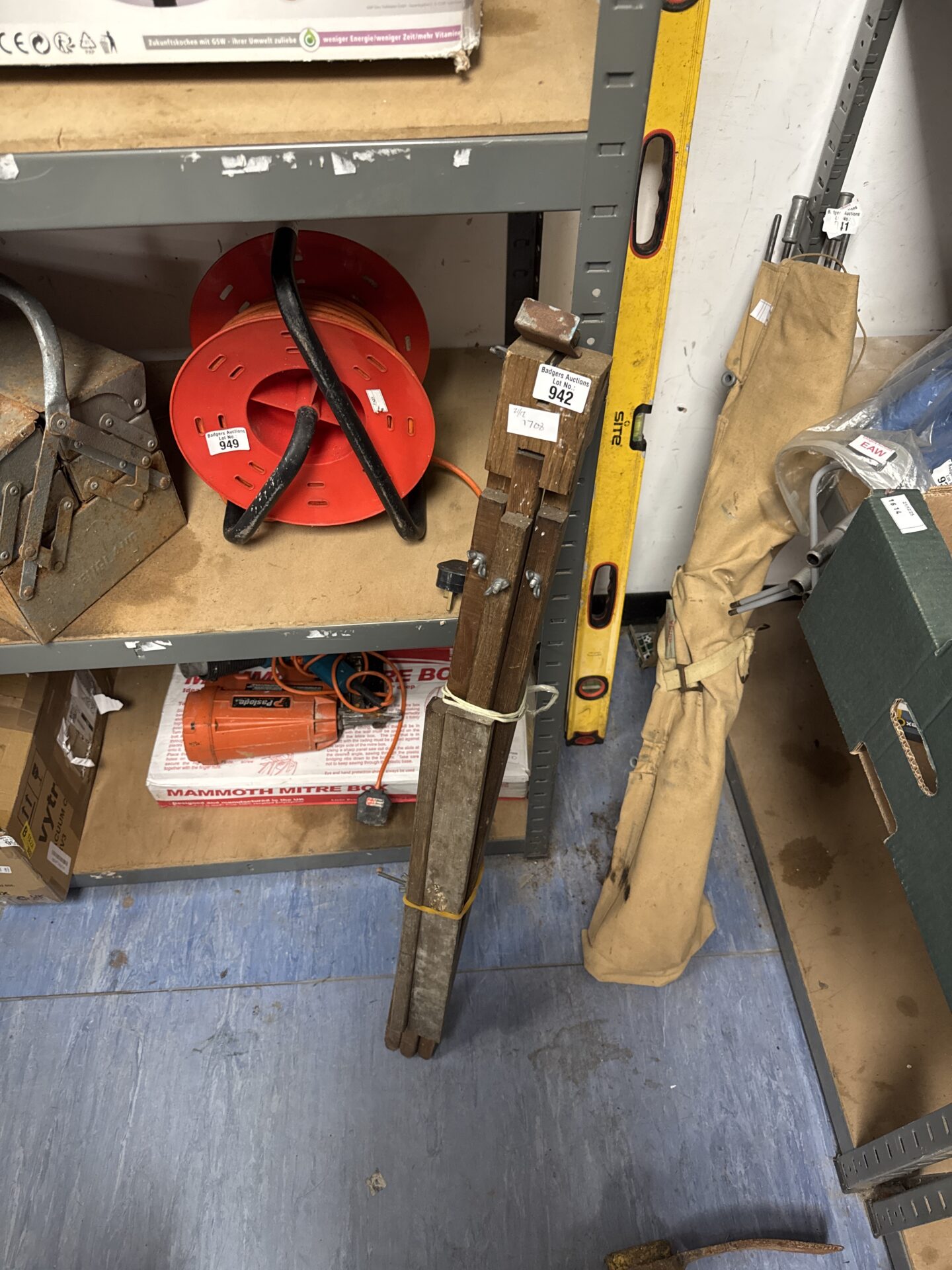 This is a vintage folding wooden easel, likely intended for artists or hobbyists. The easel features a classic design, constructed from wood and designed to fold for portability and storage. It appears to be a sturdy construction, suggesting it was built to withstand regular use.