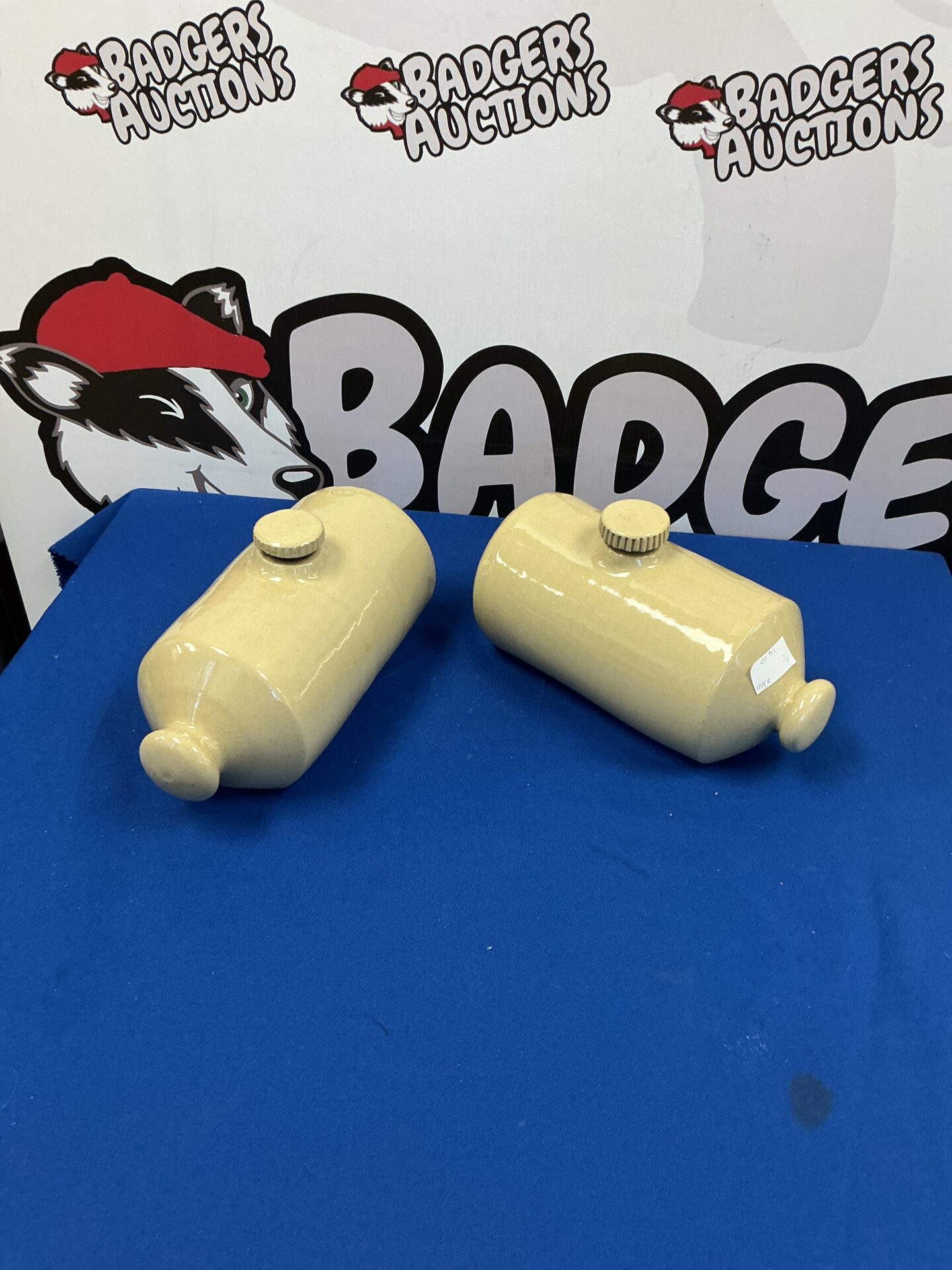 These hot water bottles show signs consistent with age and use. There may be minor imperfections, such as crazing or small chips, which add to their character and authenticity. Collectors of vintage home accessories or those seeking unique decorative items may find these bottles particularly appealing, offering a nostalgic touch to any setting.