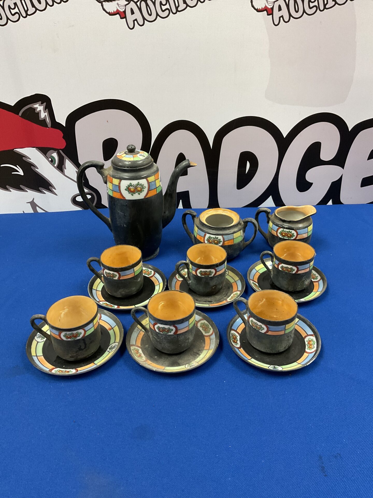 This teaset shows signs of age and use, which adds to its vintage character. There may be minor imperfections, such as slight crazing or wear to the glaze, consistent with its age and use. This set would be a wonderful addition to a collection of Japanese ceramics or vintage teaware, appealing to collectors and enthusiasts alike. Its unique design and historical significance make it a desirable piece for display or use.