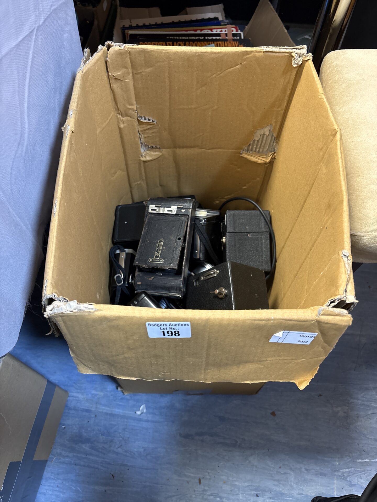 The cameras appear to be in varied condition, consistent with age and use. Some may exhibit signs of wear, such as scratches or fading, while others may be better preserved. This lot presents an opportunity for restoration projects or simply as display pieces for collectors of vintage photographic equipment.