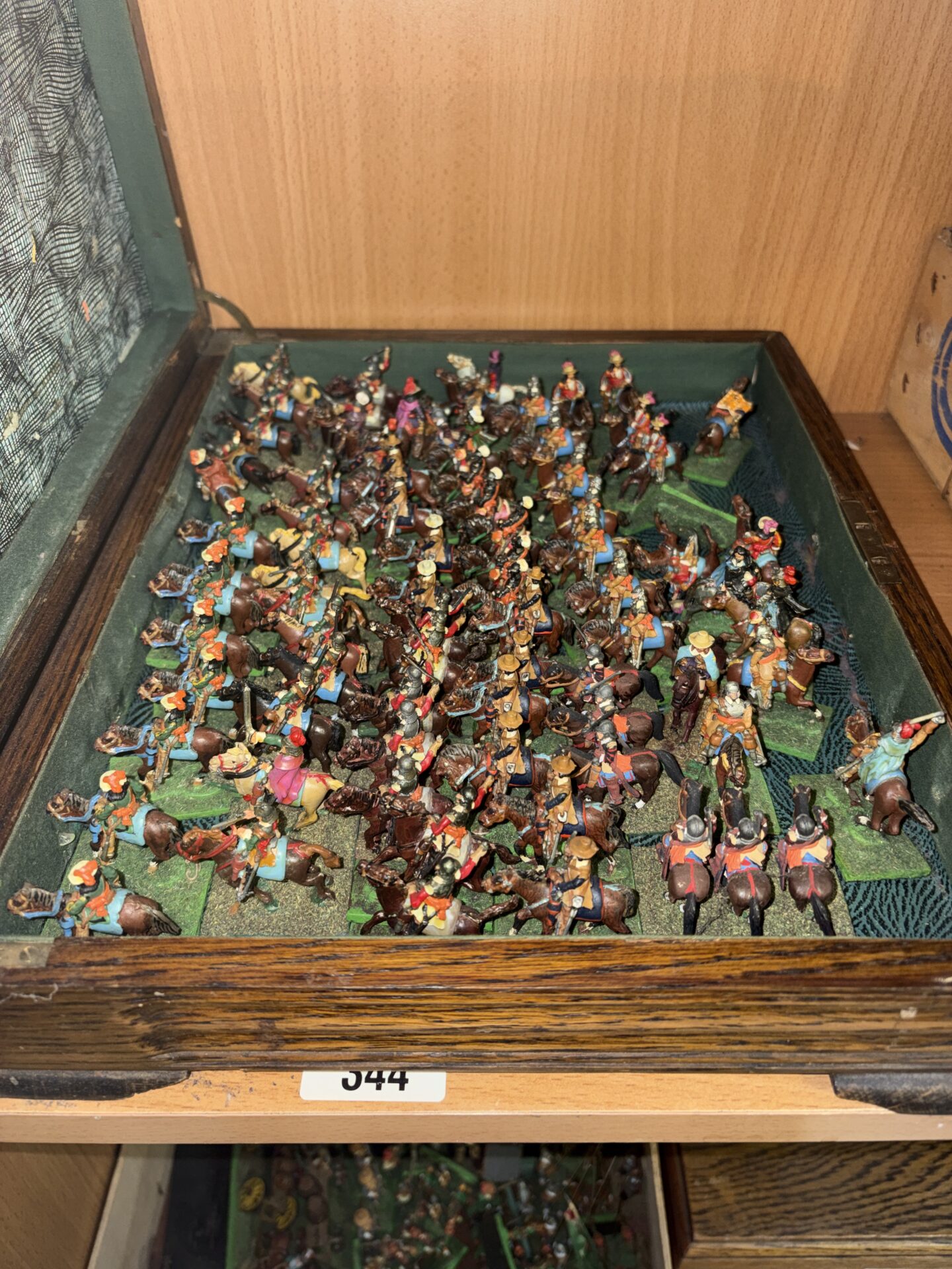 The lead soldiers exhibit signs of age and handling, with some paint loss and minor wear consistent with their vintage. Despite this, the collection remains a visually appealing and historically significant piece for collectors of military miniatures, wargaming enthusiasts, or those interested in English history. The variety of figures and their detailed craftsmanship make this a desirable addition to any collection.