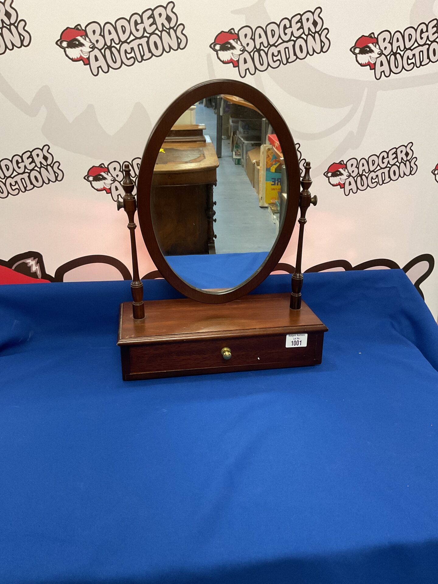 1001 Vintage Mahogany Dressing Table Mirror With Brass Handled Draw