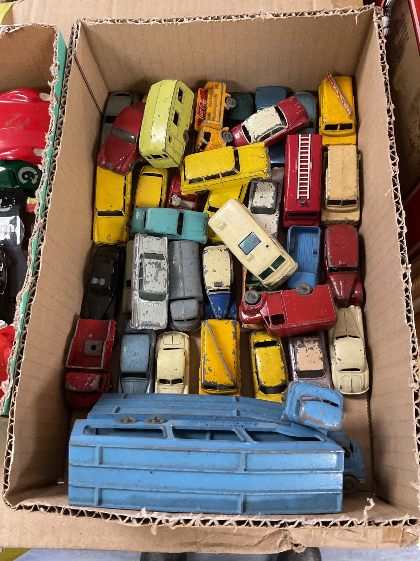 The vehicles exhibit signs of age and playwear, with some paint chipping, scratches, and minor imperfections. These imperfections contribute to the character and authenticity of the vintage toys, appealing to collectors who appreciate the history and patina of well-loved items. This collection would be a welcome addition to any diecast vehicle enthusiast’s display, offering a charming and nostalgic piece of toy history.